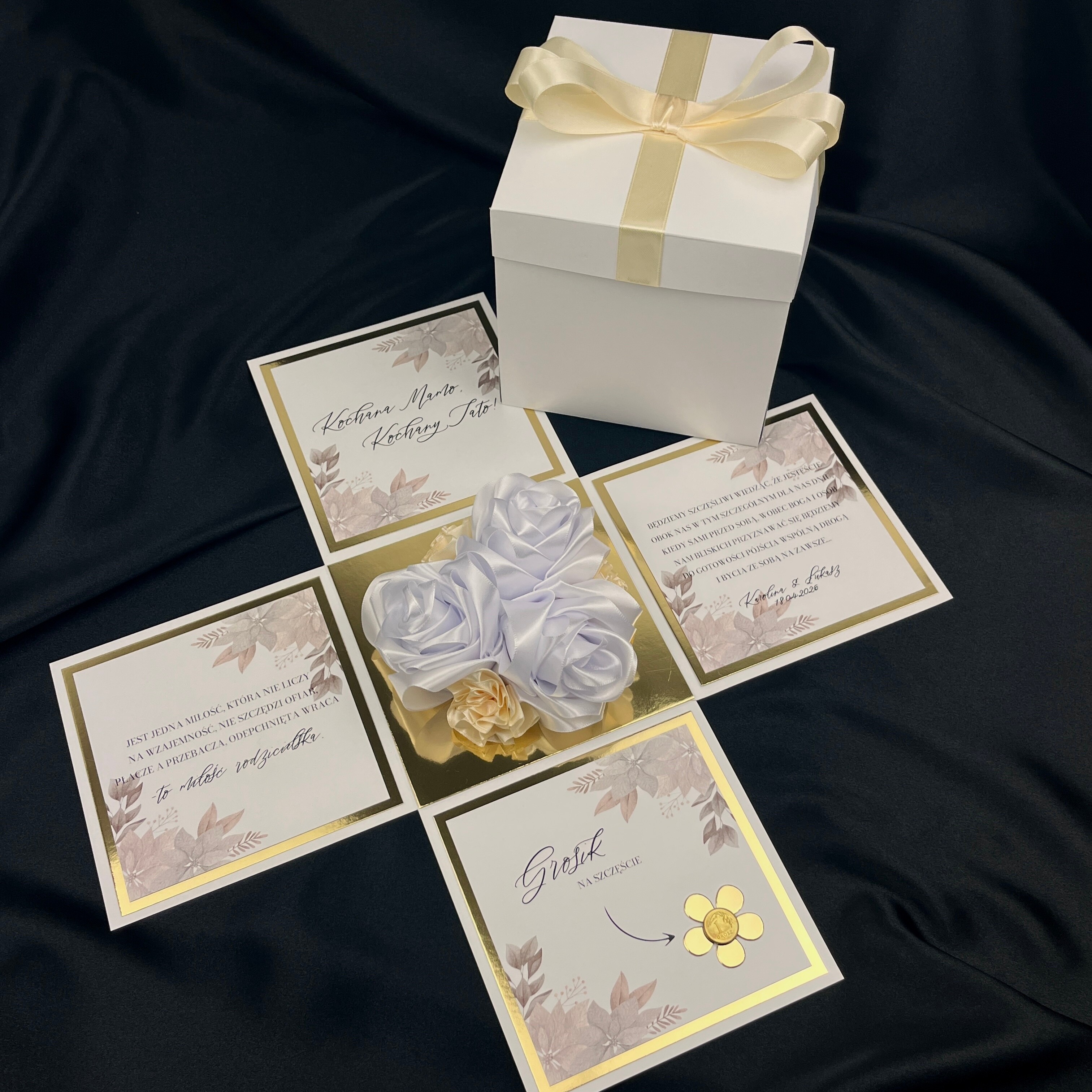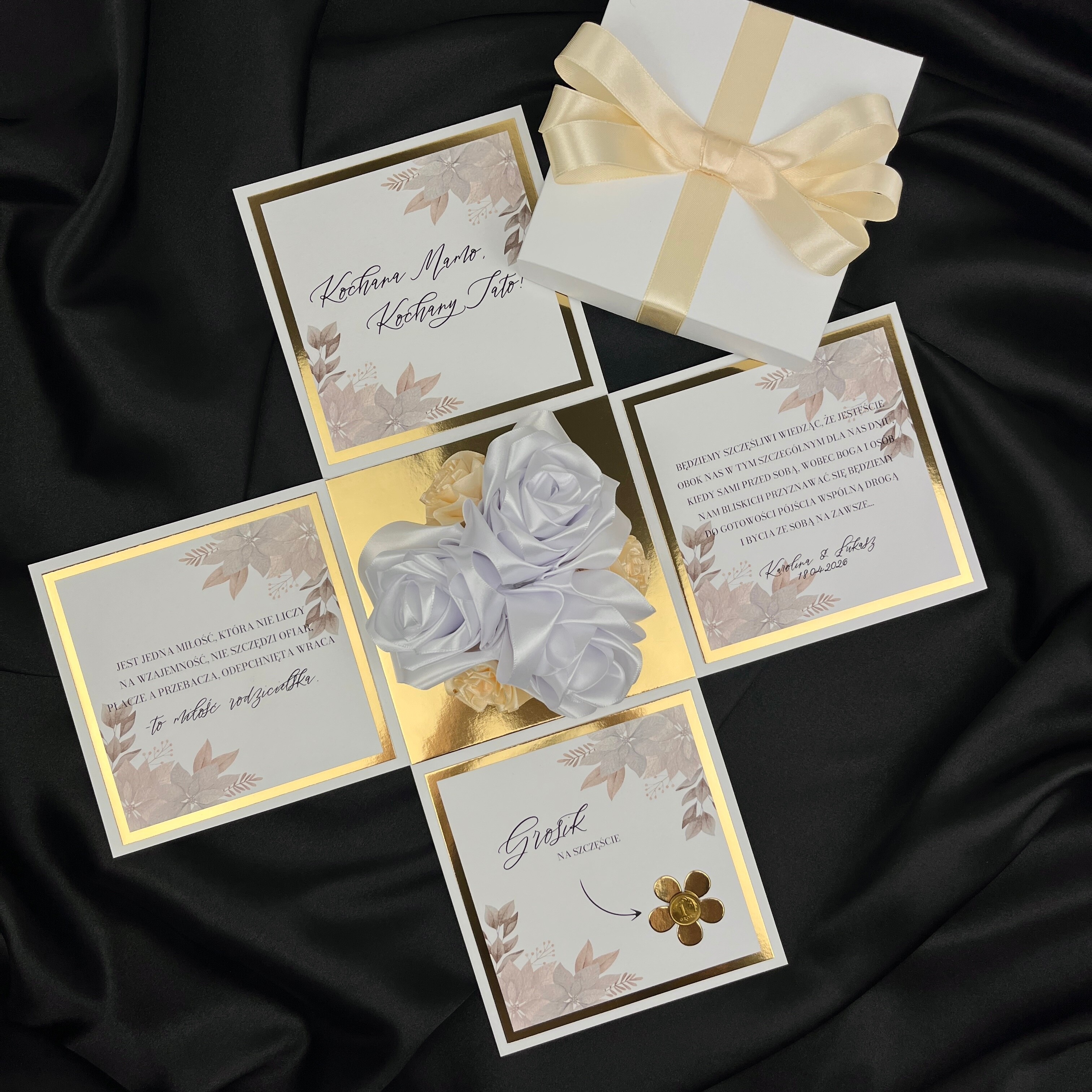 W środku znajduje się w pełni personalizowany tekst, dzięki czemu to Ty decydujesz czy mają być to wzruszające słowa, a może jakieś symboliczne, wspólne wspomnienie.