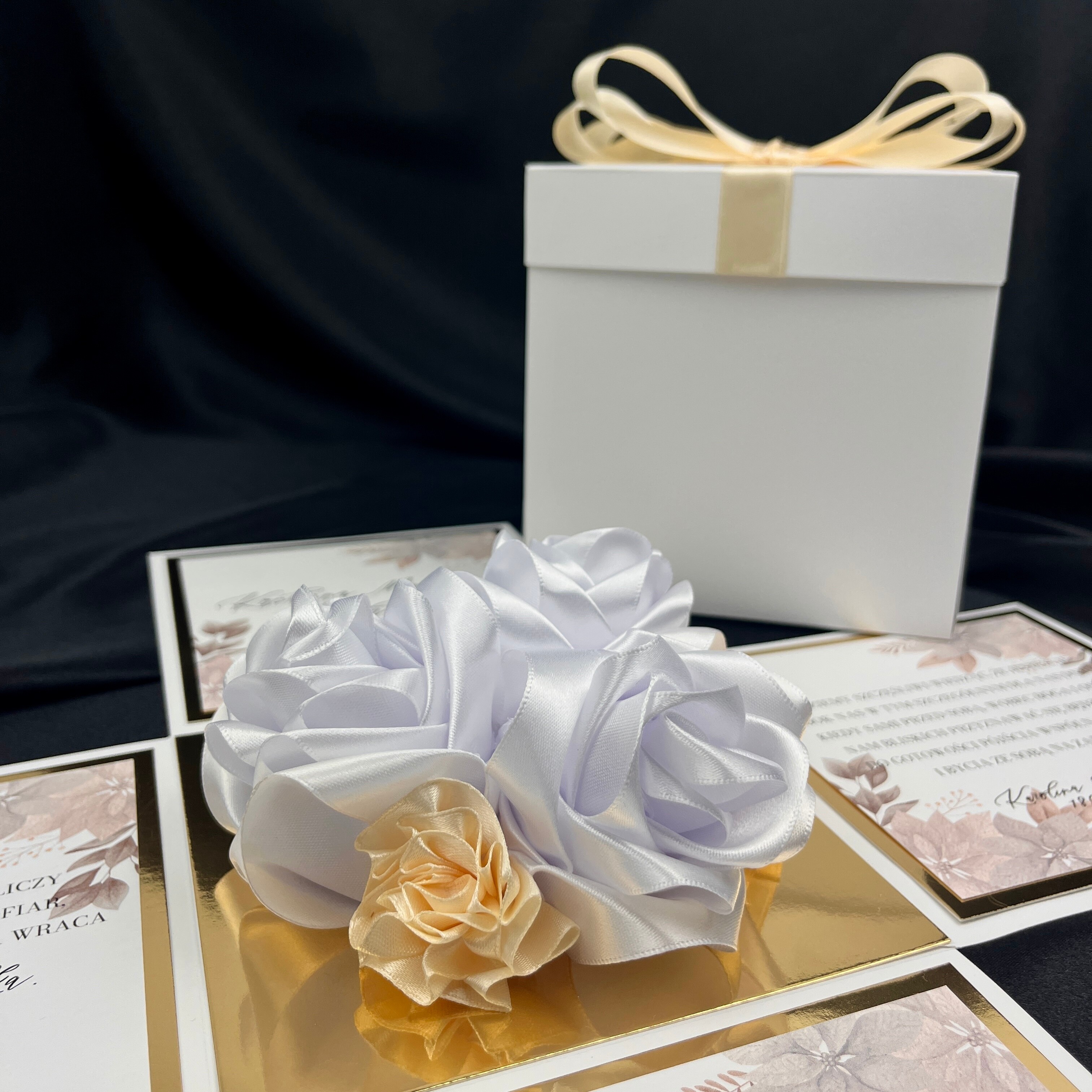 Z zewnątrz jest to zwykłe pudełko prezentowe, lecz gdy podniesie się pokrywkę, ścianki opadają na boki robiąc niesamowity efekt!