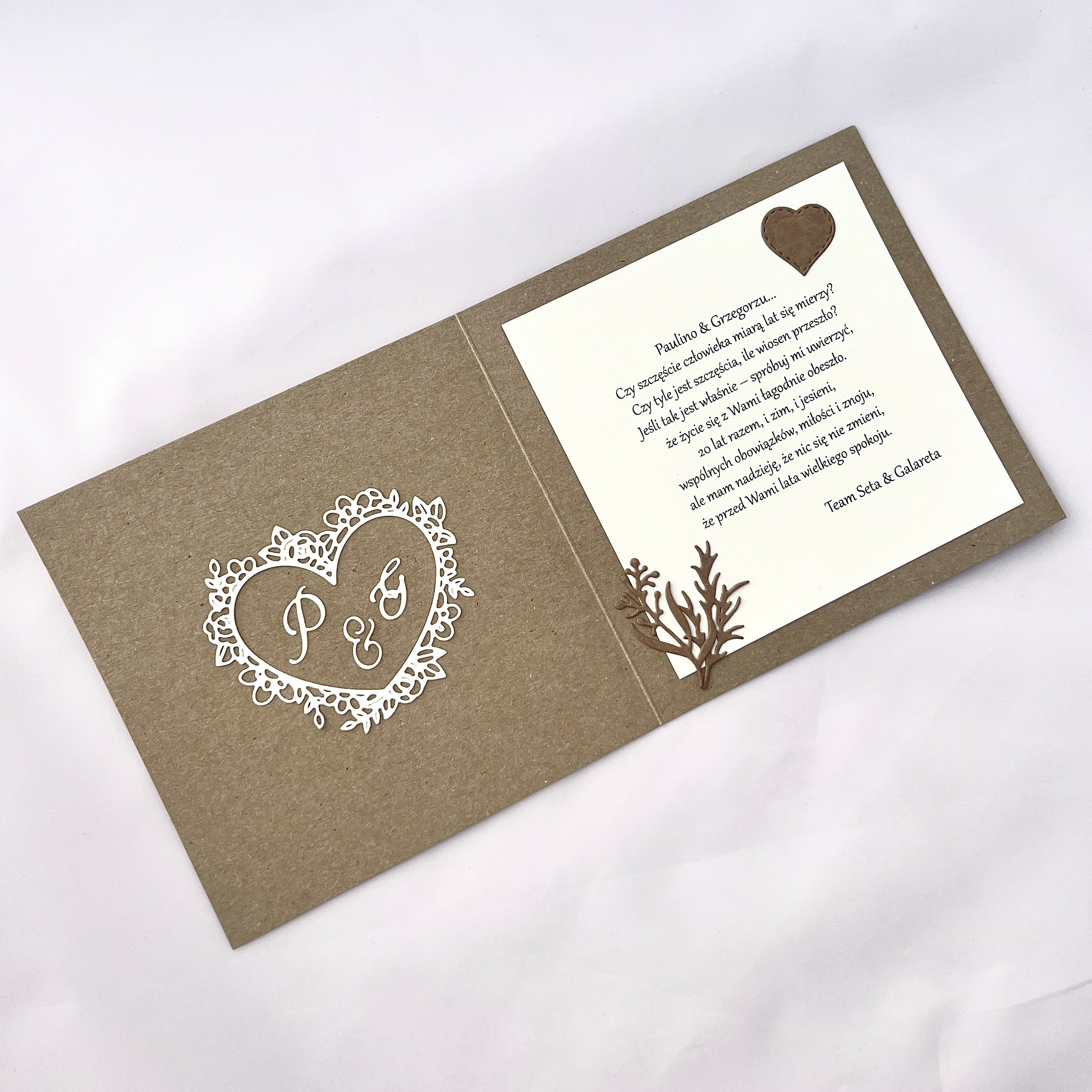 Kartka okolicznościowa to świetny dodatek do prezentu. Jest w pełni personalizowana, dzięki czemu staje się wyjątkowa i idealnie dopasowana do danej osoby. Może być pamiątką 20 rocznicy ślubu, jak i 65 urodzin! Styl rustykalny daje efekt elegancji, a swoją prostotą przyciągnie wzrok niejednego.