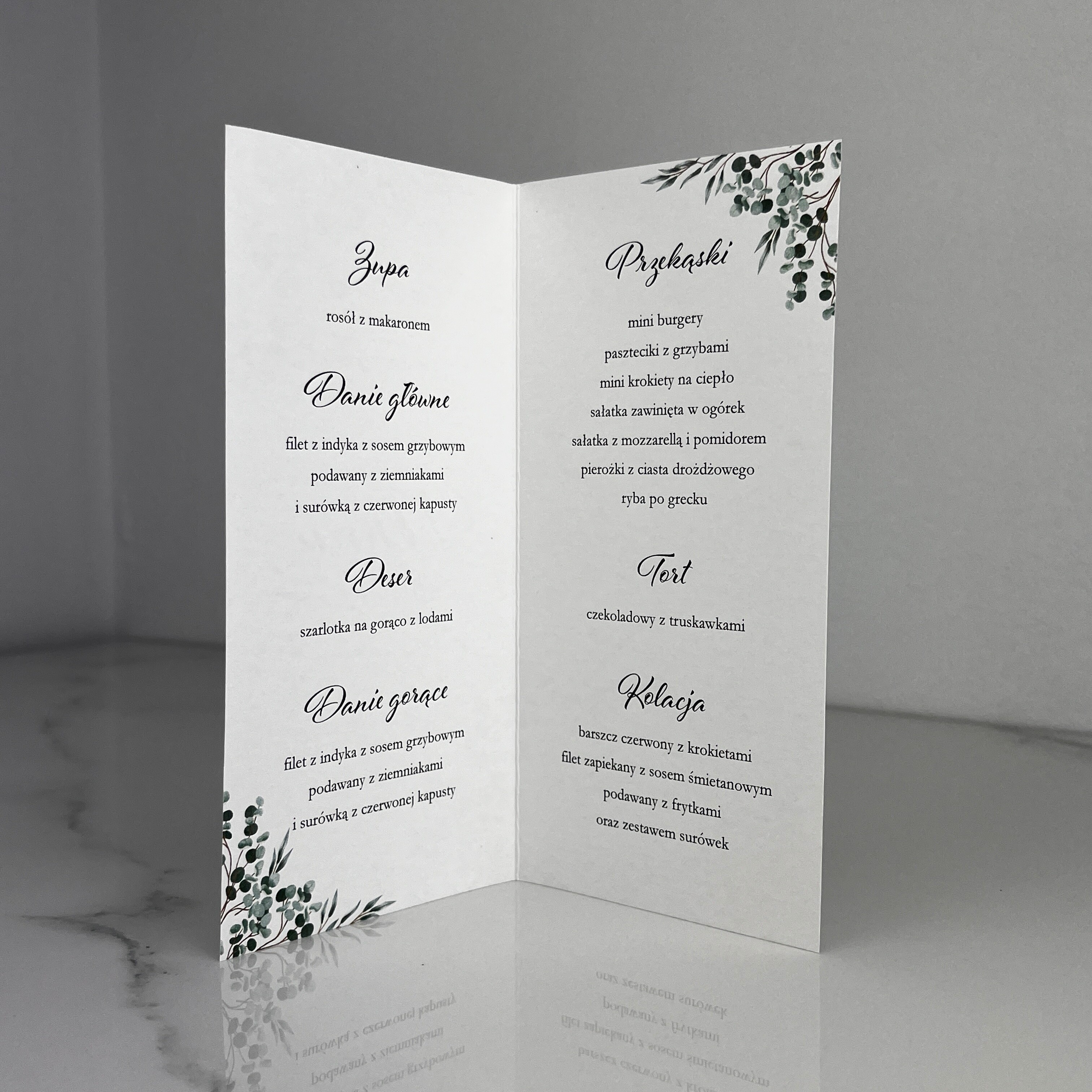 Menu nie tylko służy do informacji, ale również pięknie uzupełnia stoły i łączy się z resztą dodatków.