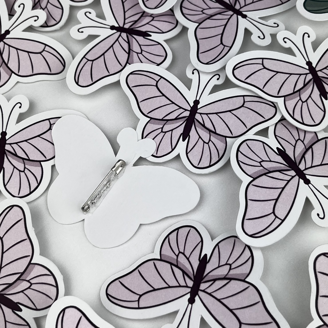 Motylki o wymiarze ok. 7x7 cm na agrafce. Możliwość zmiany kolorów oraz wzoru.