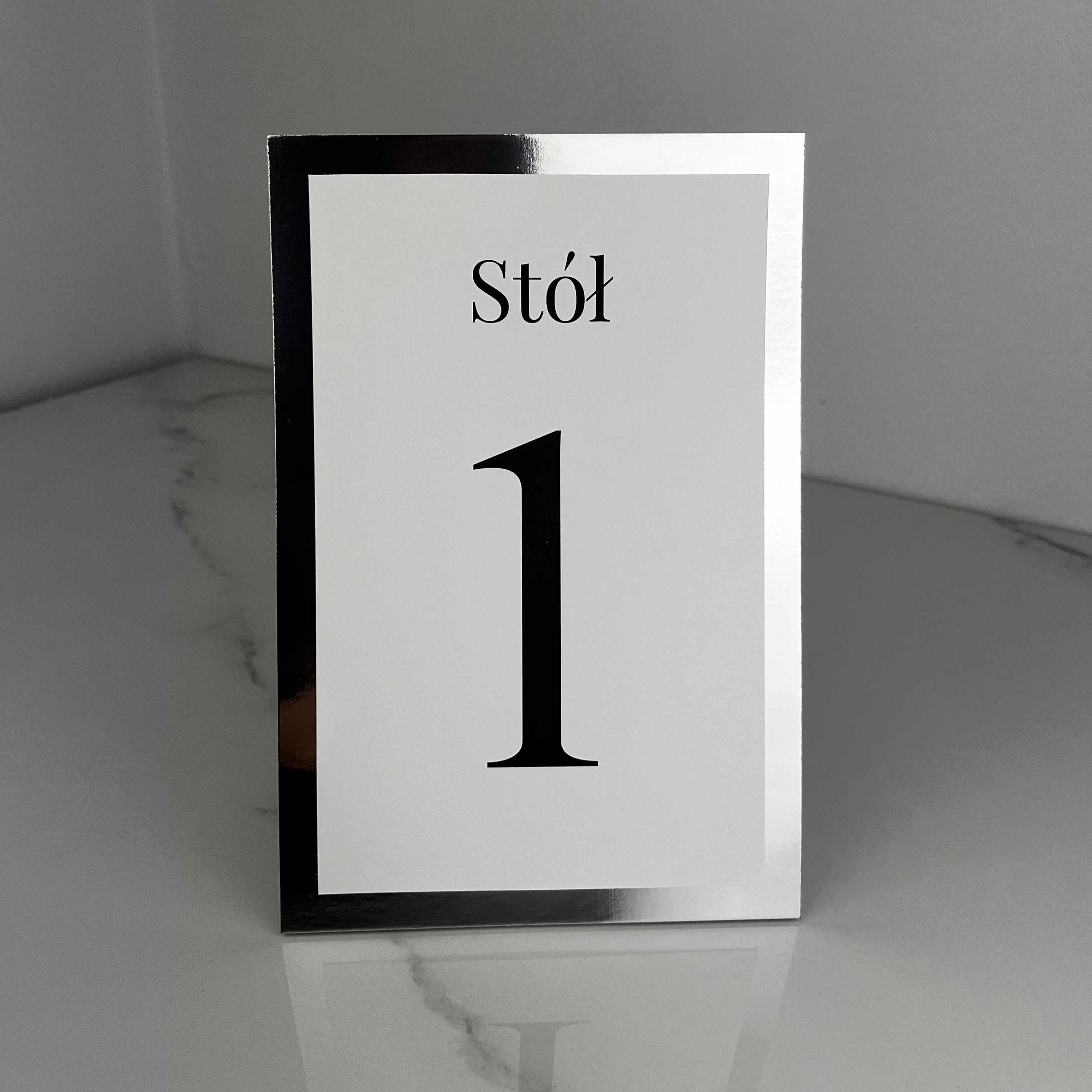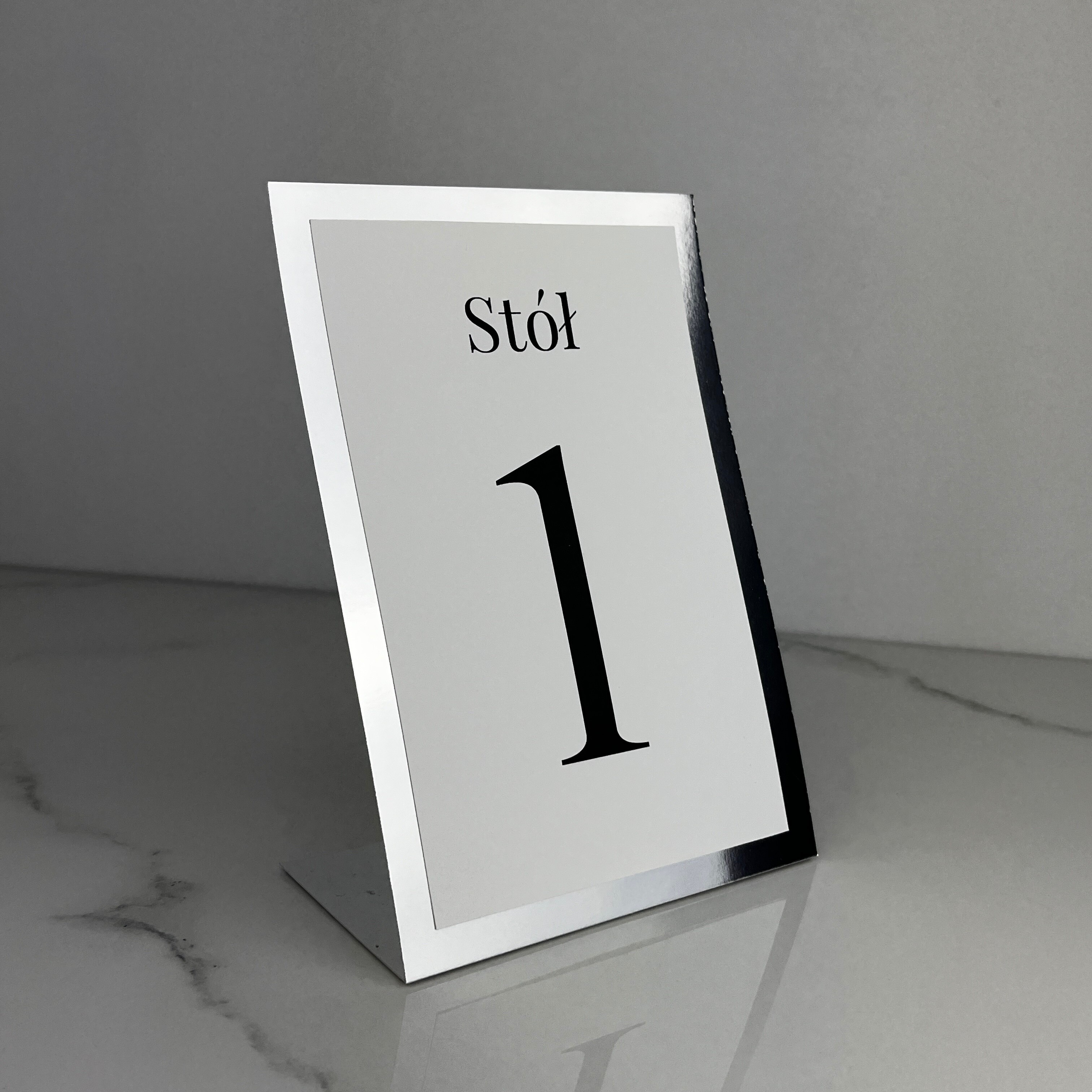 Numer stołu na pewno ułatwi Waszym Gościom odnalezienie właściwego miejsca, ale również jest bardzo fajną formą dekoracji. Metaliczna, srebrna rameczka i minimalistycznym motywem daje dużo elegancji, a przy delikatnych winietkach w tym samym stylu, stoły z pewnością zrobią świetne wrażenie na wszystkich zebranych.