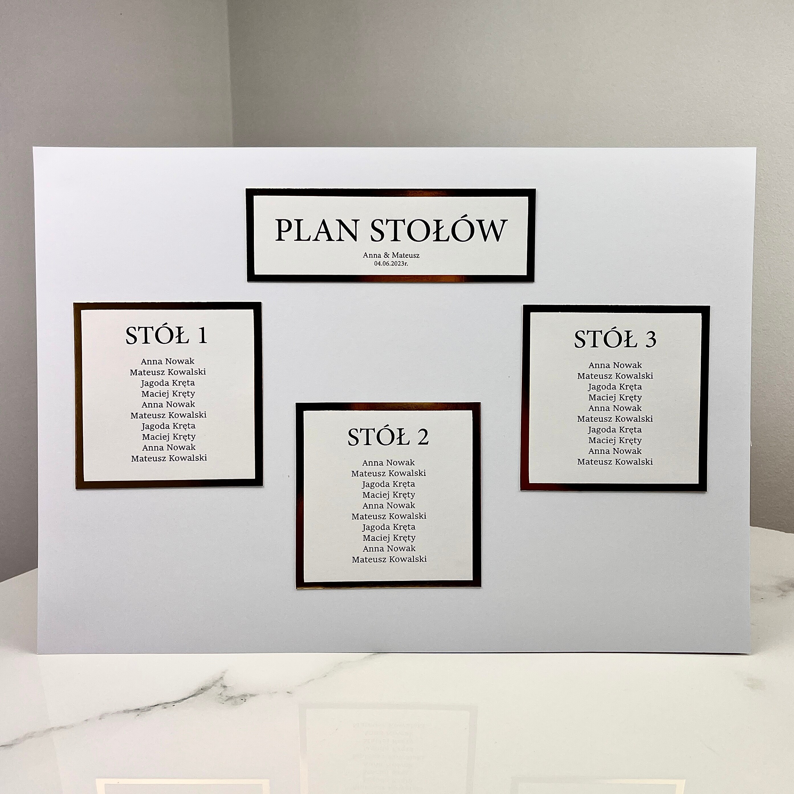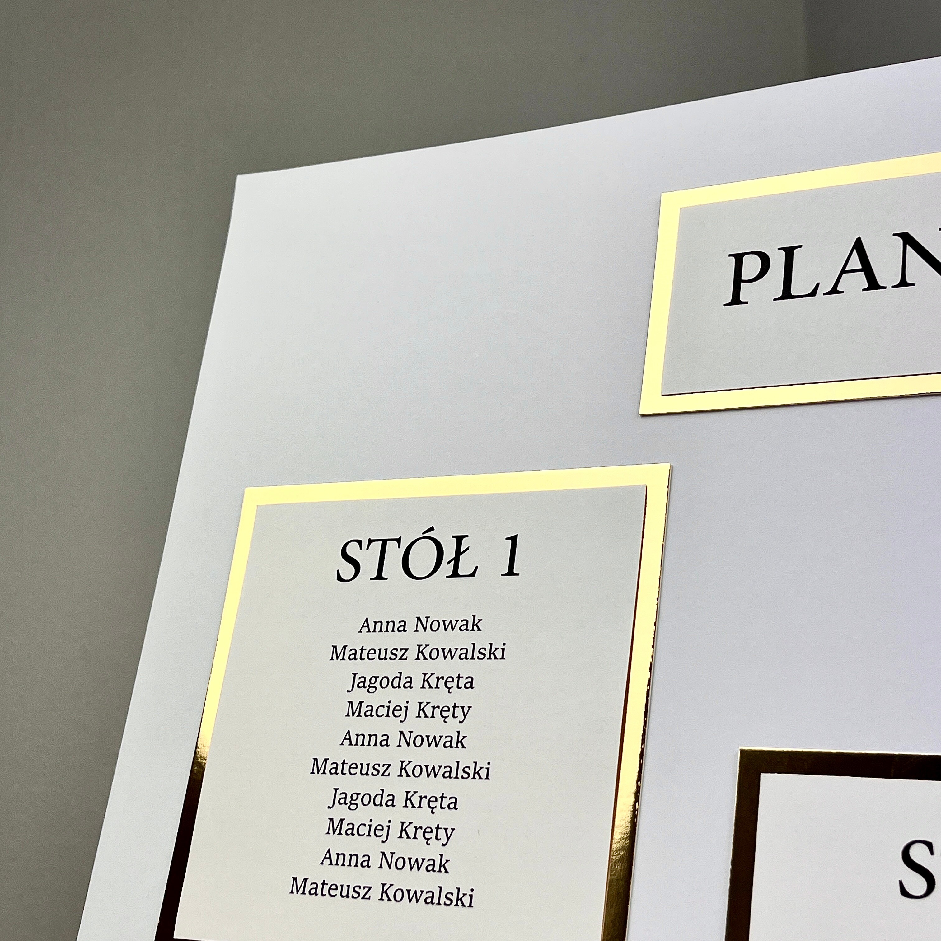 Plan stołów w formie pojedynczych kartek.