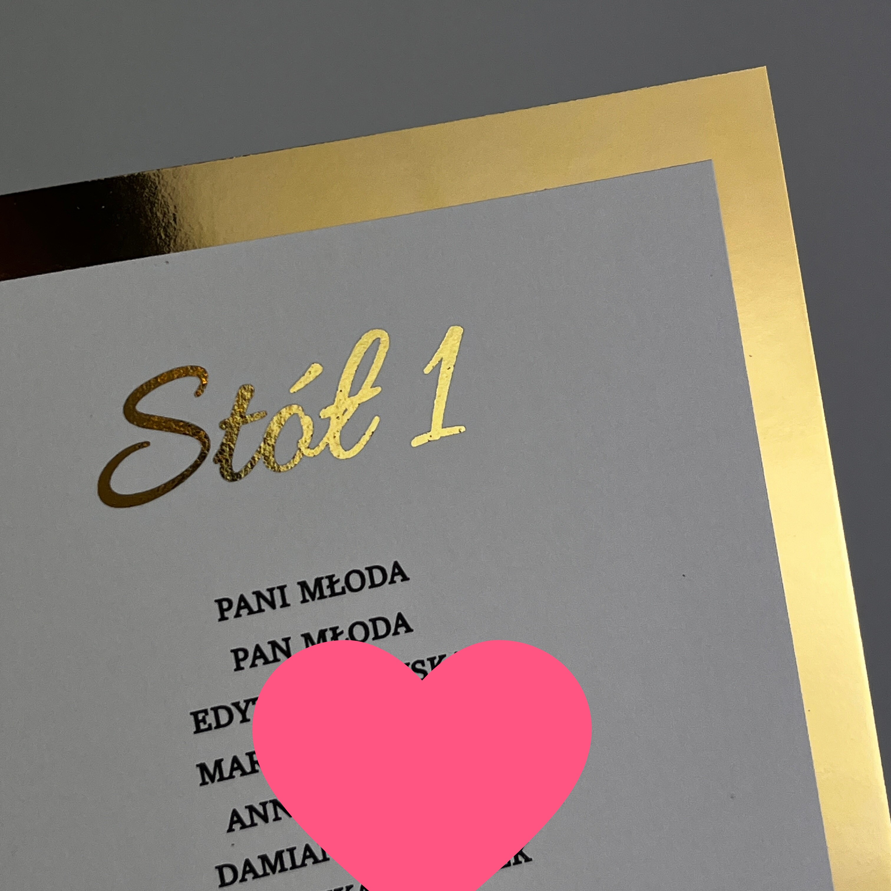 Możliwość wyboru dowolnej grafiki, czcionki, dodatkowej ramki (jak na zdjęciu - złota), pozłocenia napisów itp.