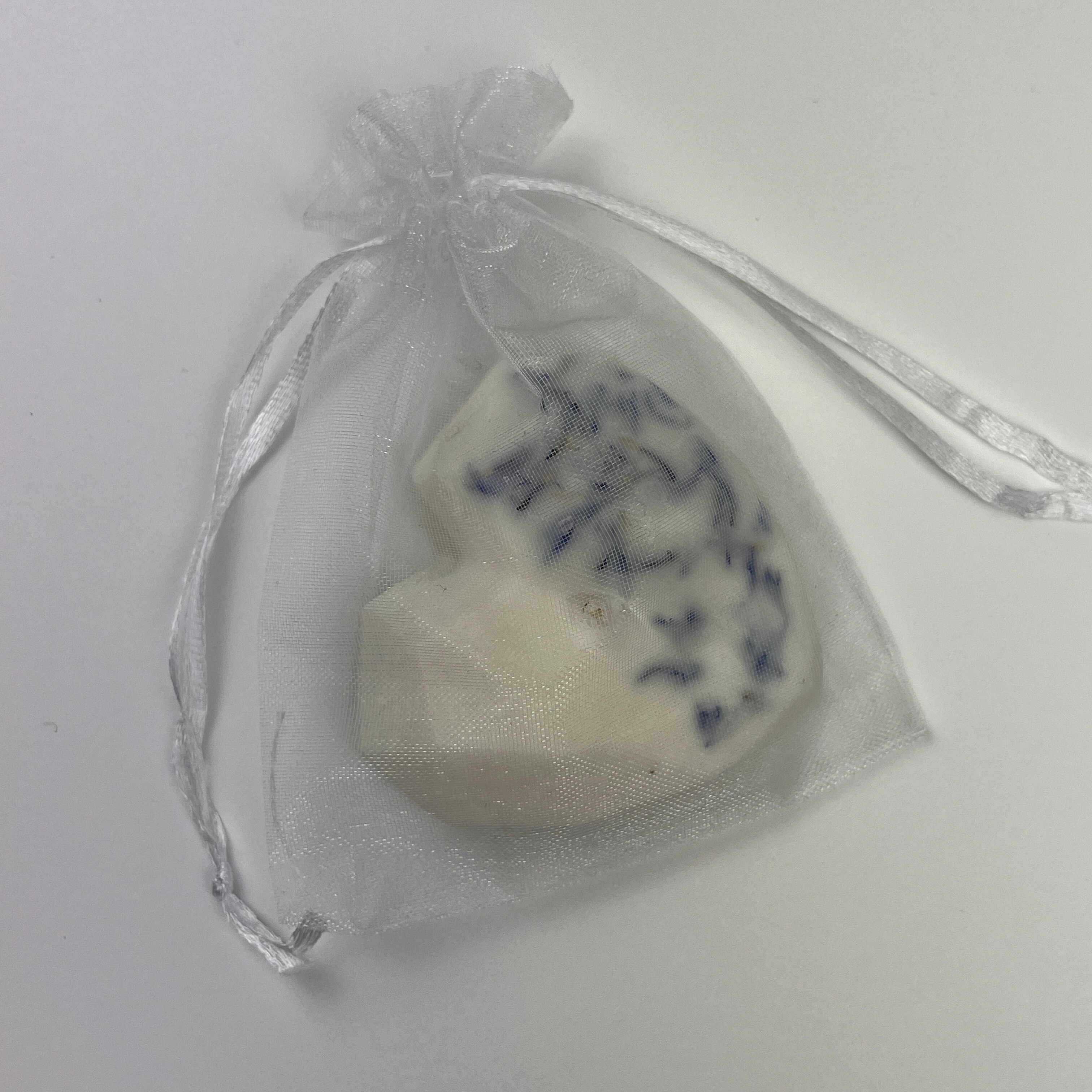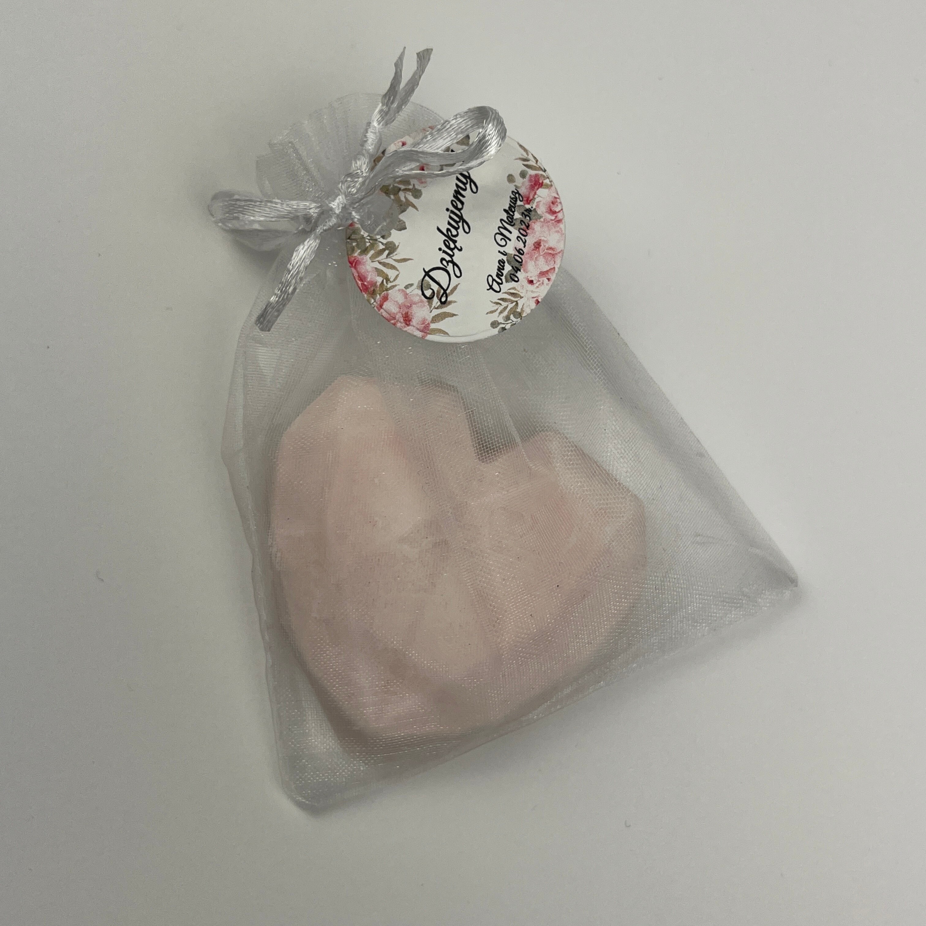 Mydełko lub świeczuszka w kształcie serca. Możliwość wyboru koloru serduszka, koloru woreczka, koloru, kształtu, grafiki zawieszki.