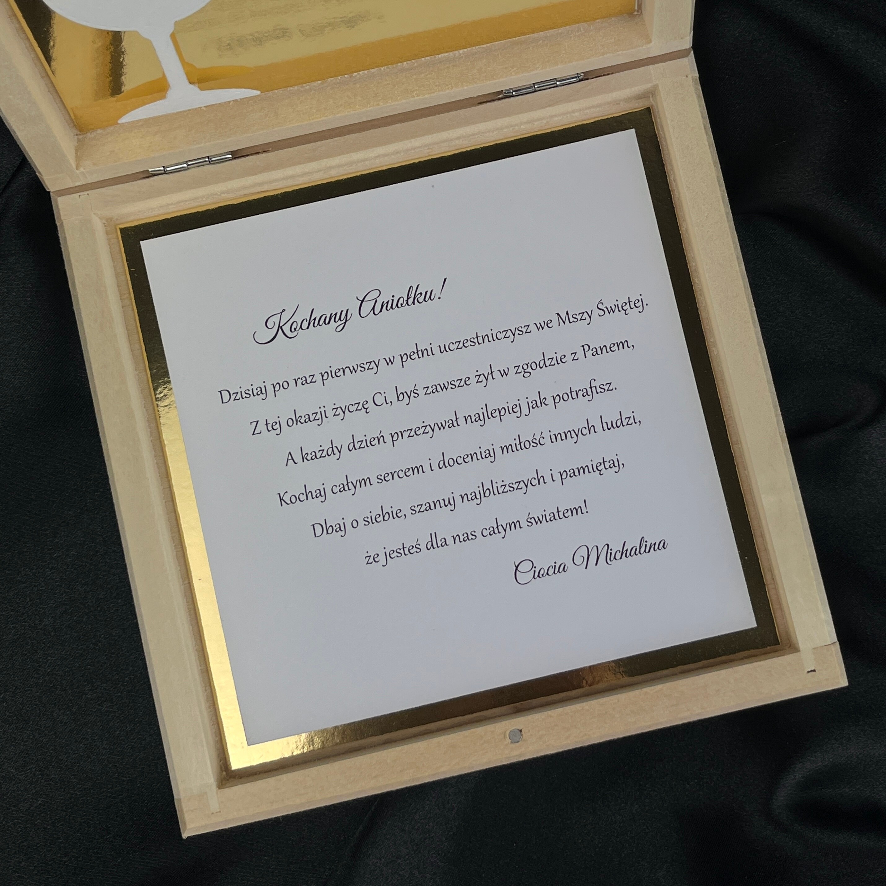 *W środku znajdują się życzenia oraz kieszonka np. na bon podarunkowy.
