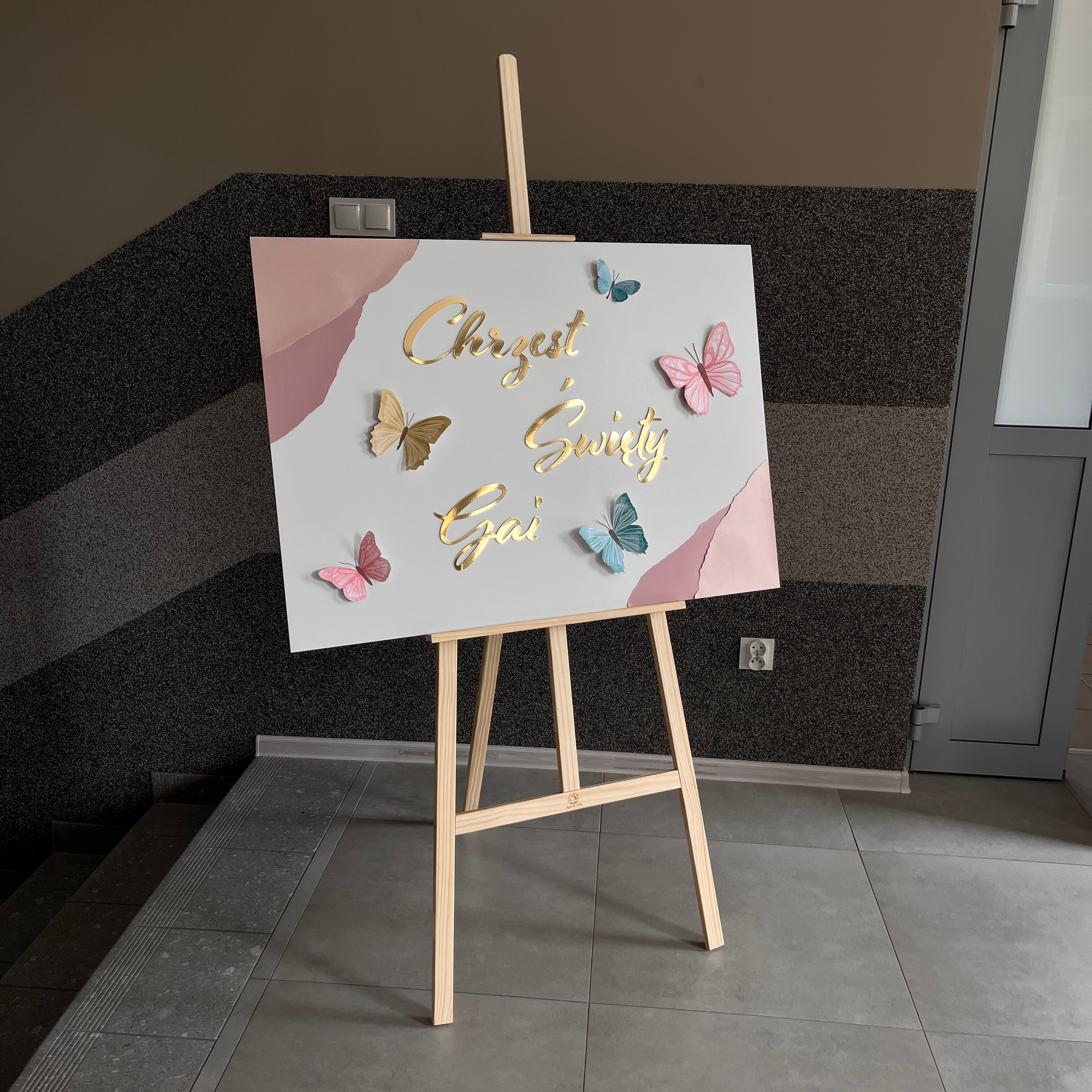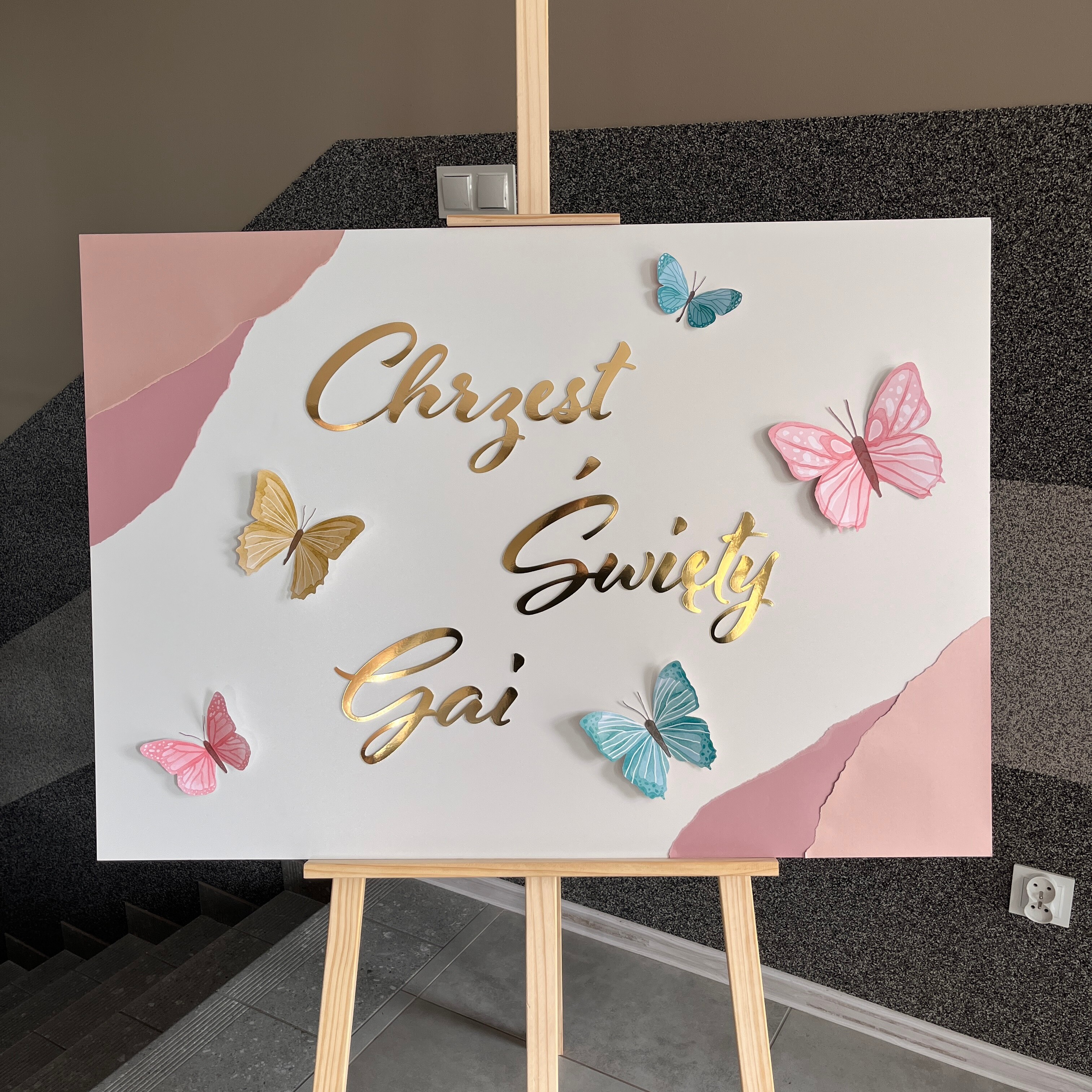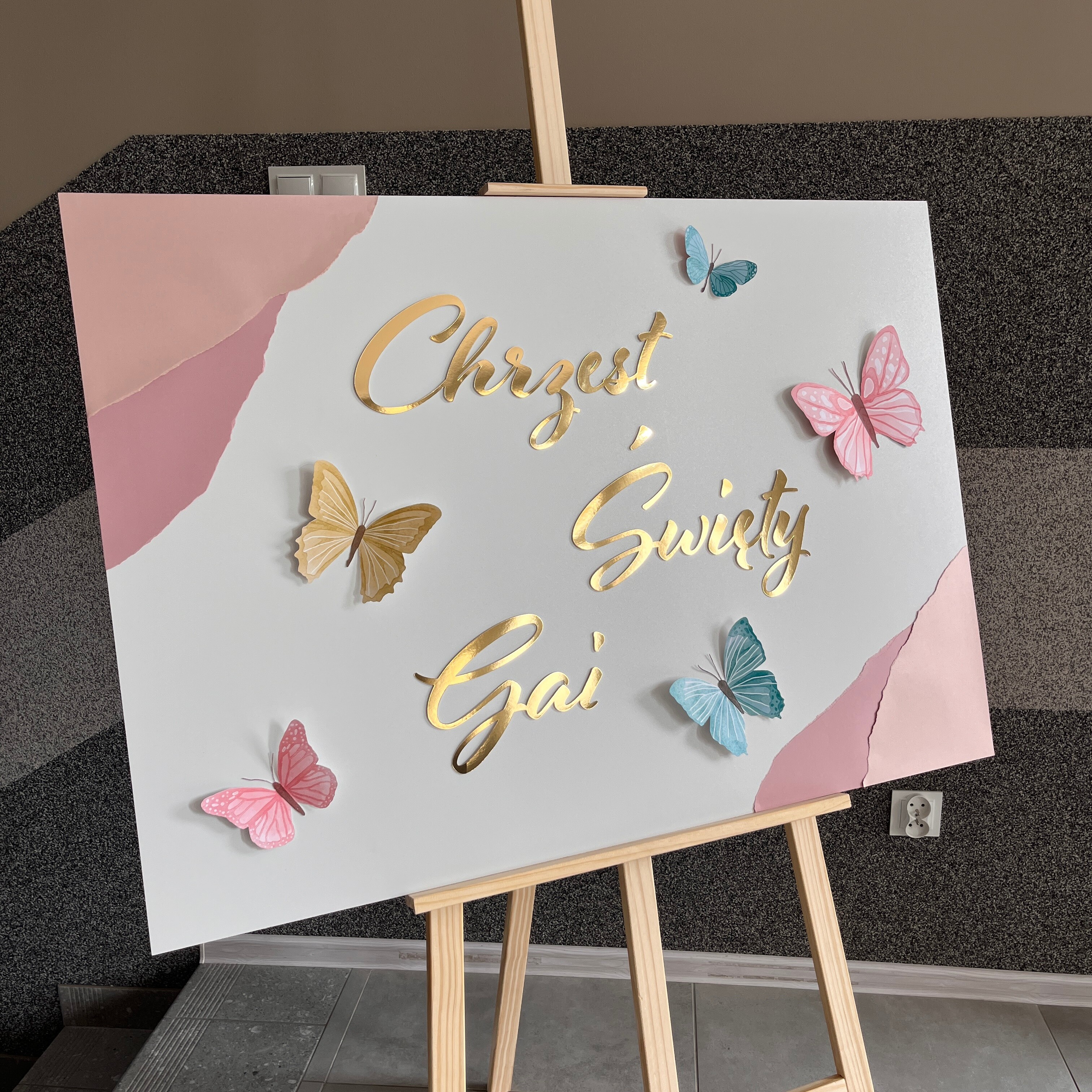 Tablica powitalna z dowolnym wzorem oraz napisem. Możliwość naklejenia różnych elementów, które zrobią efekt 3D.