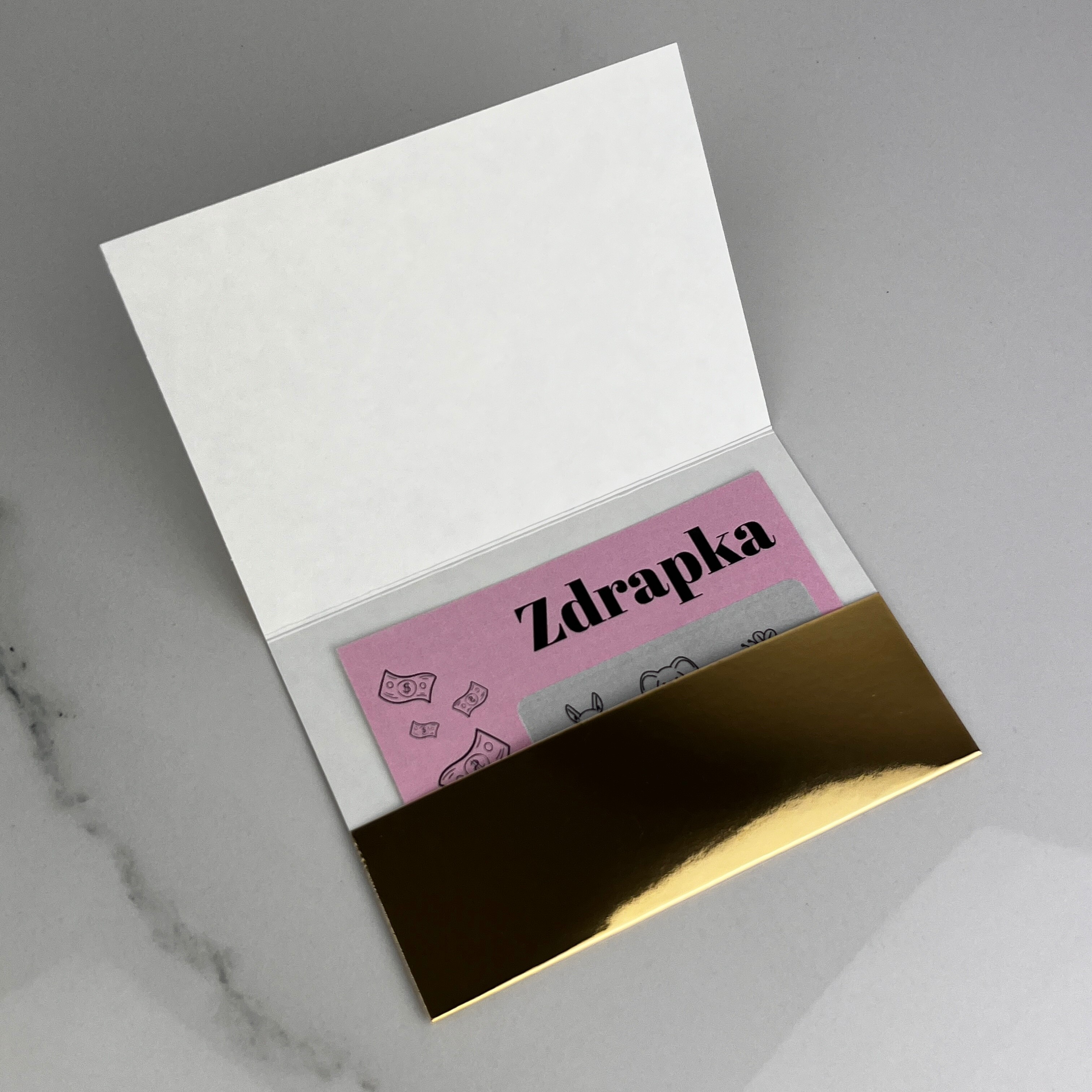 W środku winietki znajduje się mała kieszonka na zdrapkę.