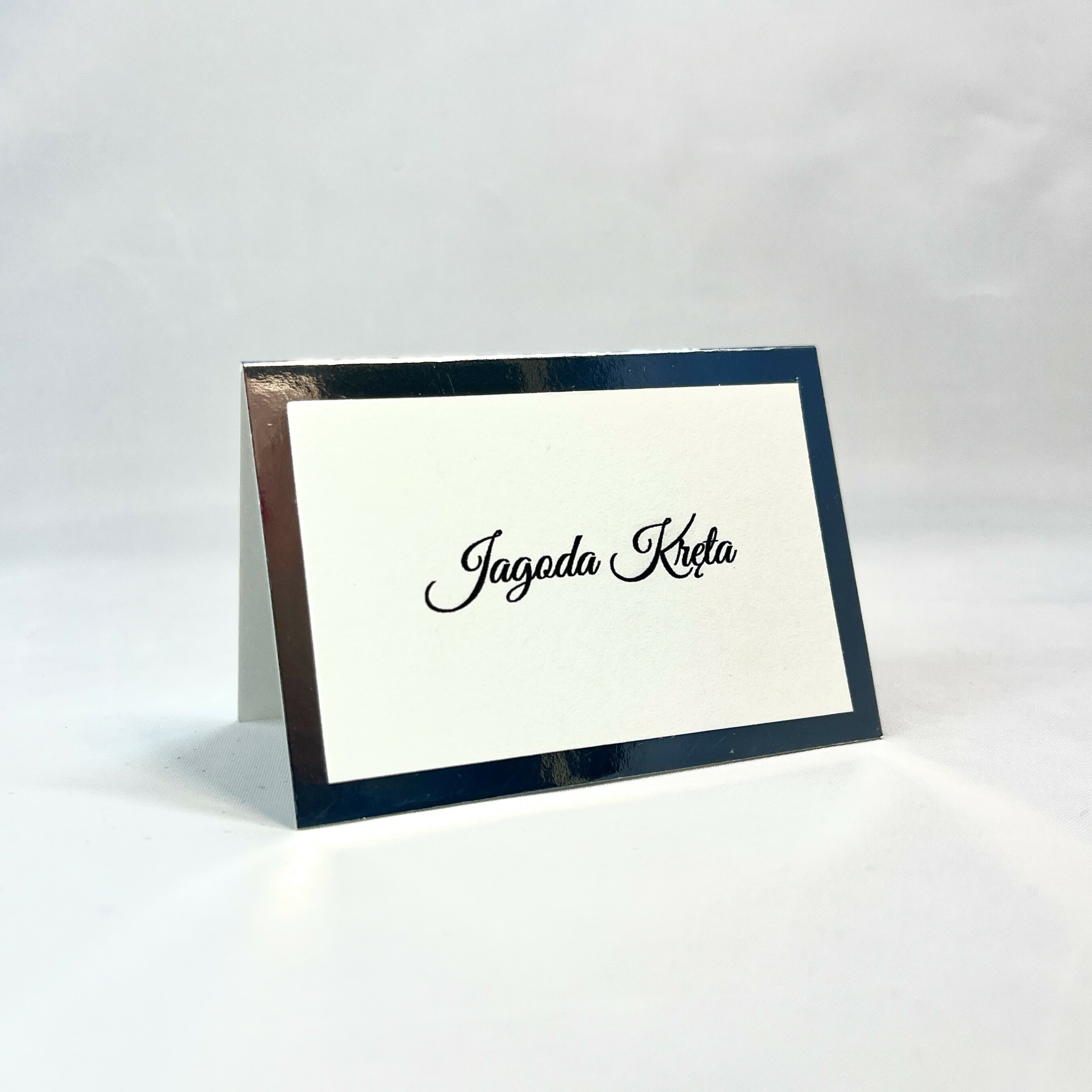 Elegancka, minimalistyczna winietka w stylu glamour. Srebrna baza nadaje szyku, a delikatna biała wklejka lekkości w wyglądzie. Idealna na stoły weselne jak i również na inne przyjęcia okolicznościowe.