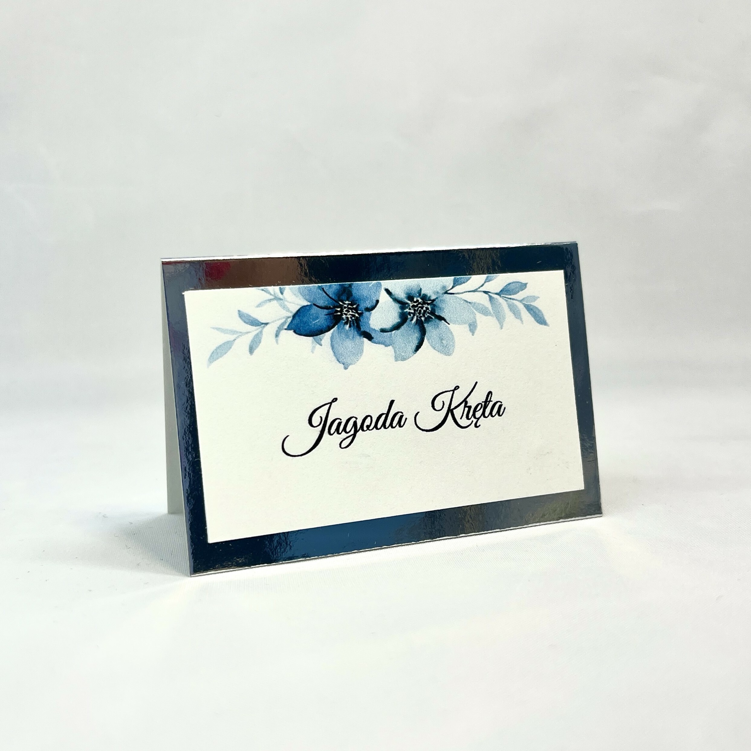 Elegancka winietka w stylu glamour z motywem kwiatów idealnie pasująca do zaproszeń. Srebrna baza nadaje szyku, a delikatna biała wklejka lekkości w wyglądzie. Idealna na stoły weselne jak i również na inne przyjęcia okolicznościowe.