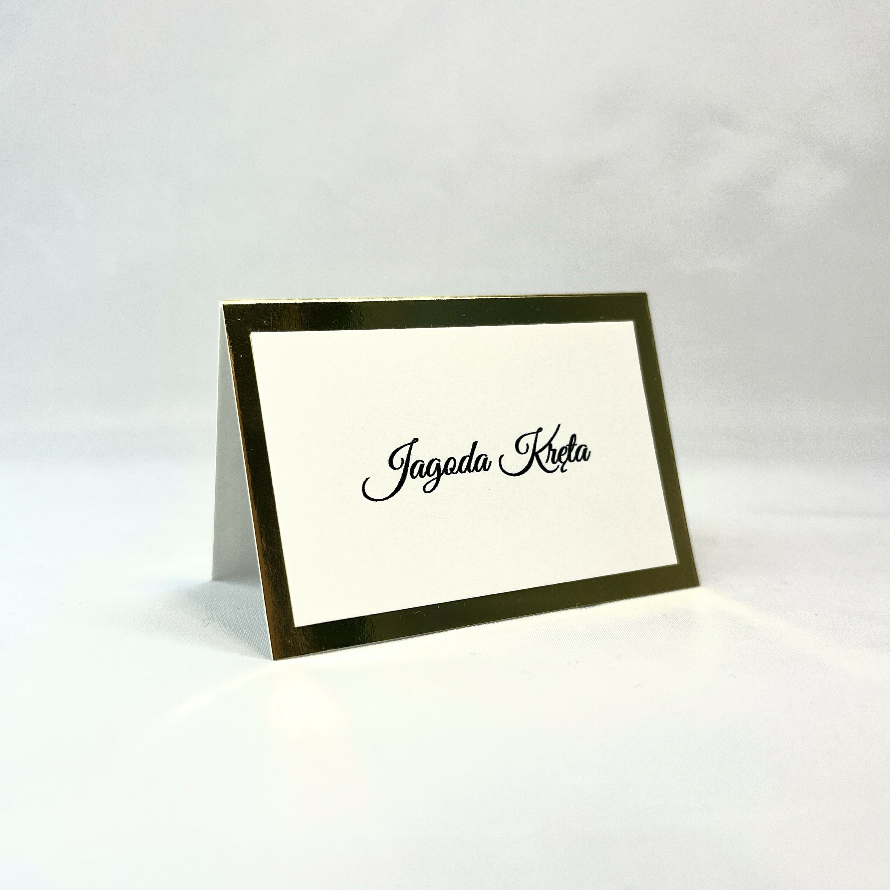Elegancka, minimalistyczna winietka w stylu glamour. Złota baza nadaje szyku, a delikatna biała wklejka lekkości w wyglądzie. Idealna na stoły weselne jak i również na inne przyjęcia okolicznościowe.