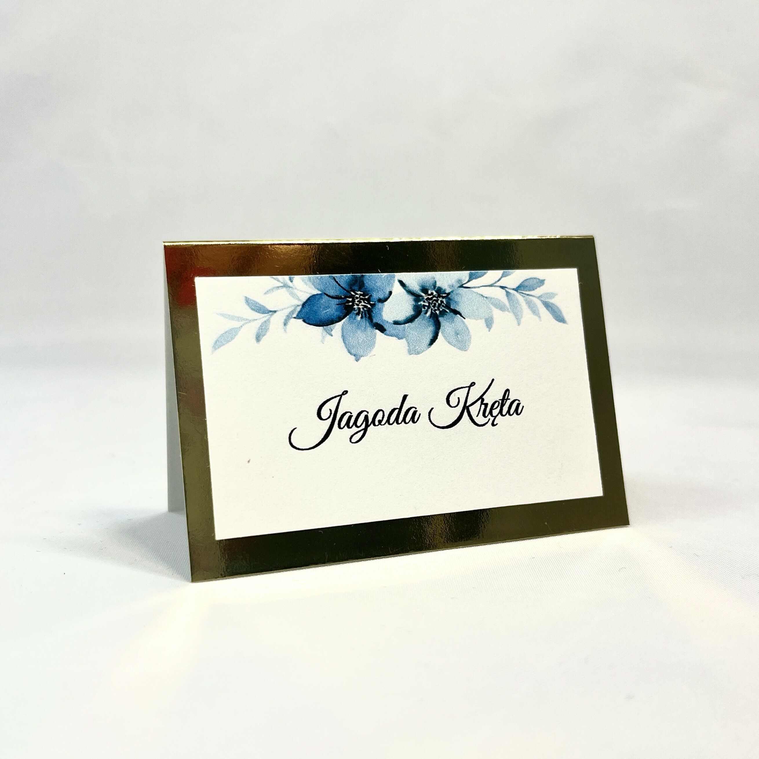 Elegancka winietka w stylu glamour z motywem kwiatów idealnie pasująca do zaproszeń. Złota baza nadaje szyku, a delikatna biała wklejka lekkości w wyglądzie. Idealna na stoły weselne jak i również na inne przyjęcia okolicznościowe.