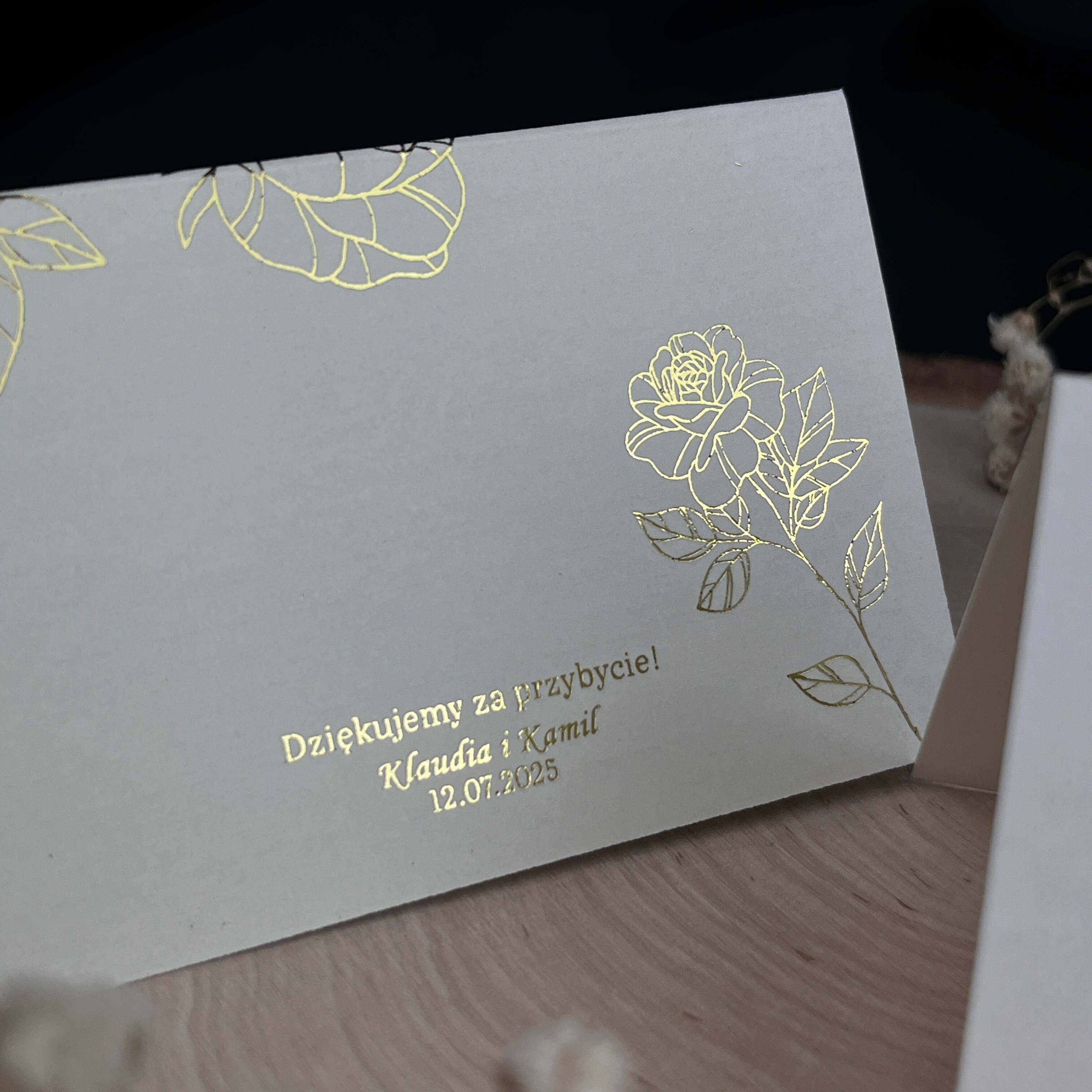 Delikatna winietka z kwiatami, która z pewnością wpasuje się w dekoracje stołu oraz dopełni całość.