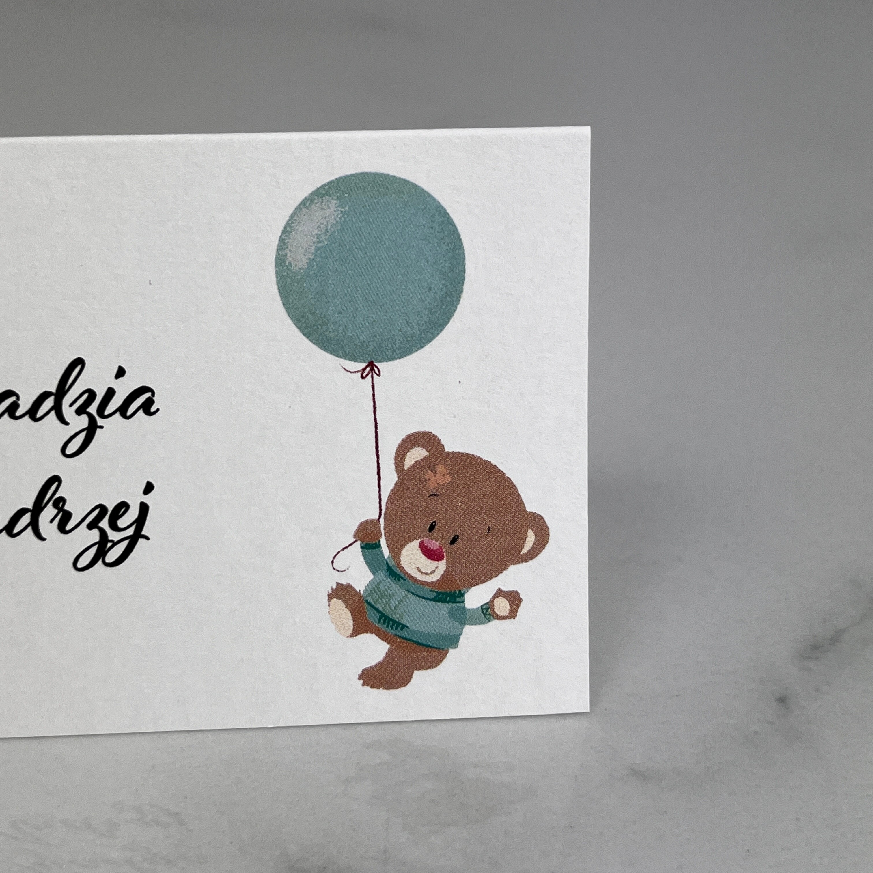 Delikatna winietka z misiem świetnie sprawdzi się na Chrzty, Komunie lub urodziny.