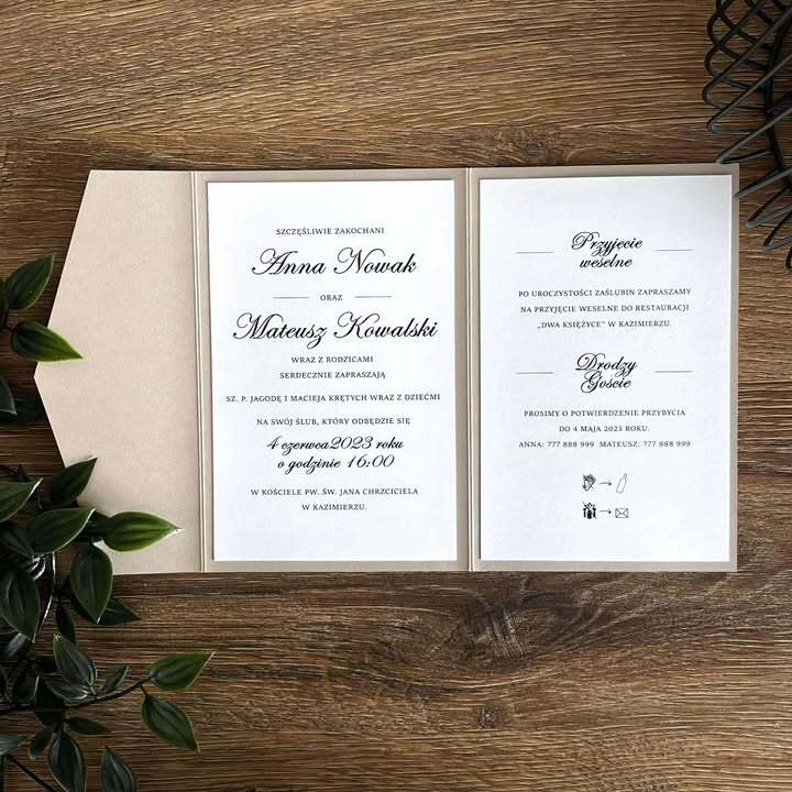 Zaproszenie folderowe jest zachowane w eleganckim stylu i z pewnością spodoba się każdemu!