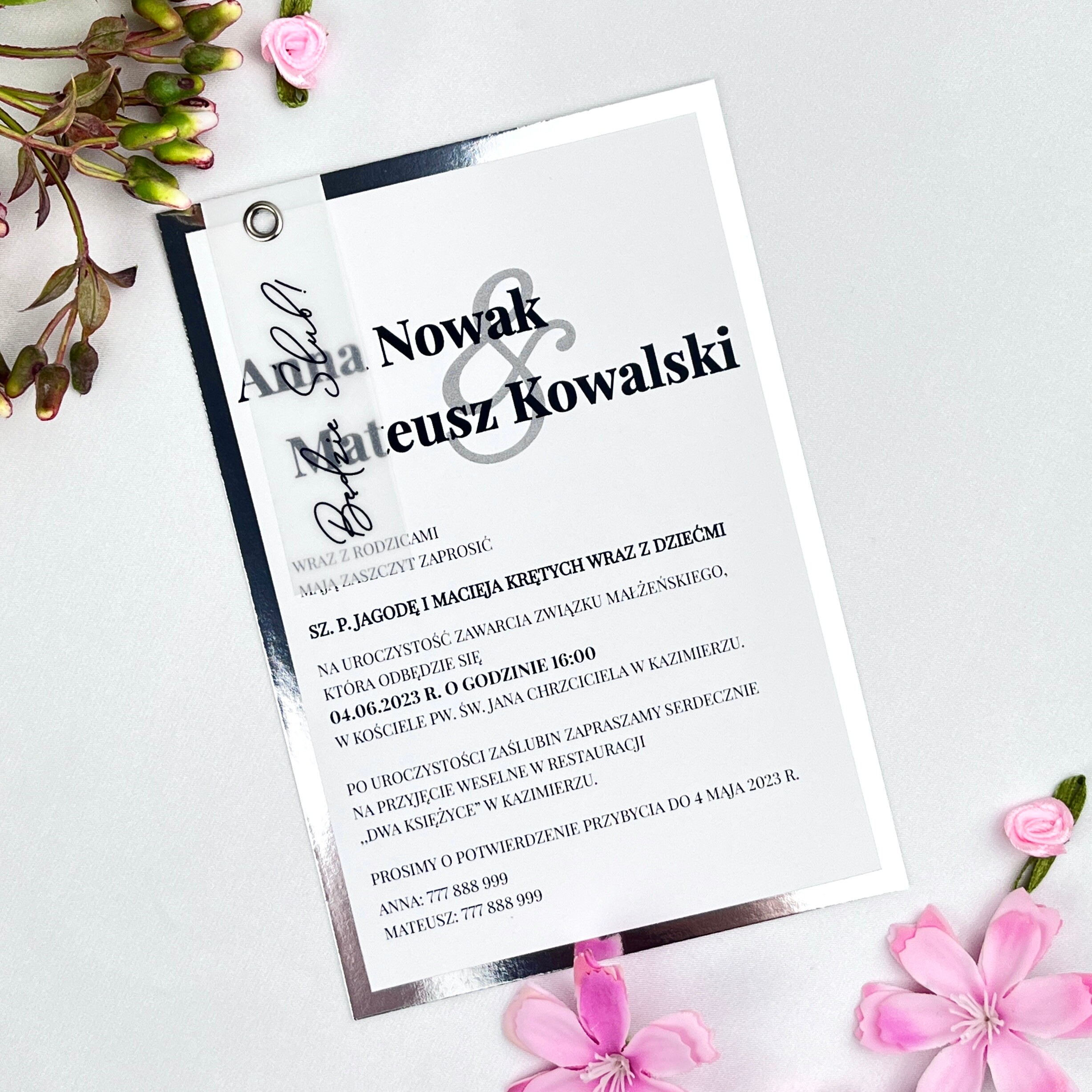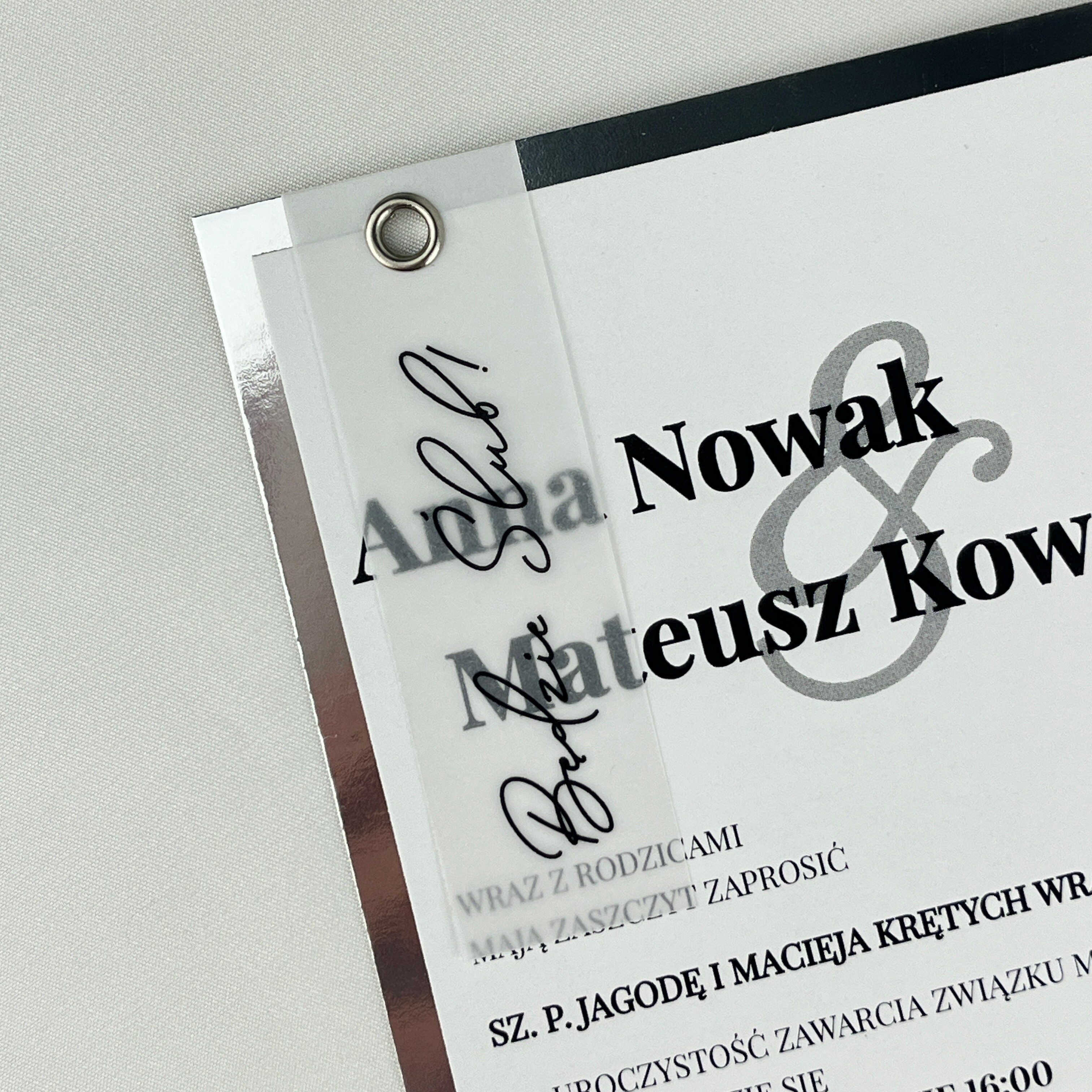 3) Zaproszenie z metalowym kółeczkiem oraz małą karteczką z dowolnym napisem;
