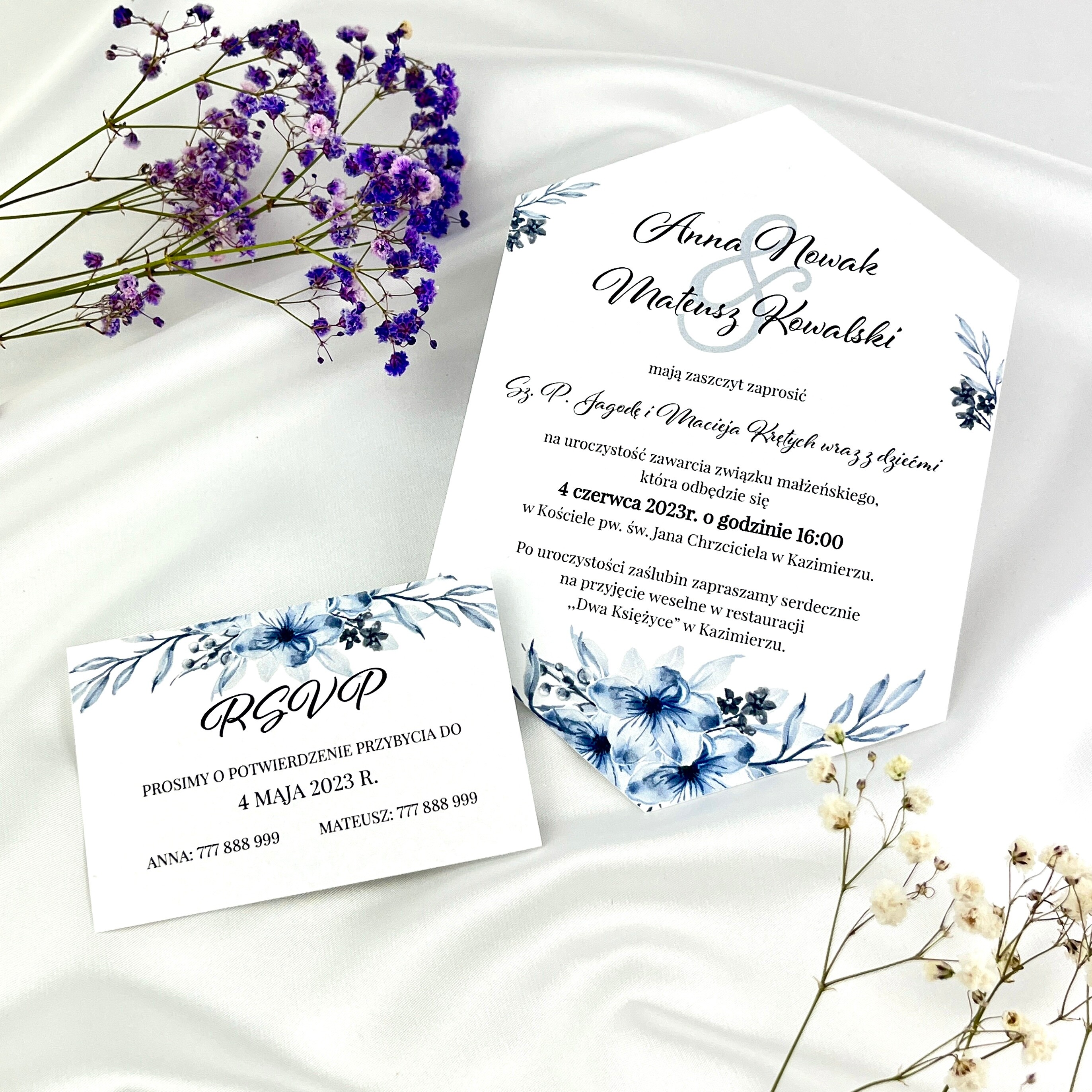 Możliwość zmiany kwiatów oraz treści zaproszenia, w tym celu skontaktuj się ze mną przez wybrane media społecznościowe.