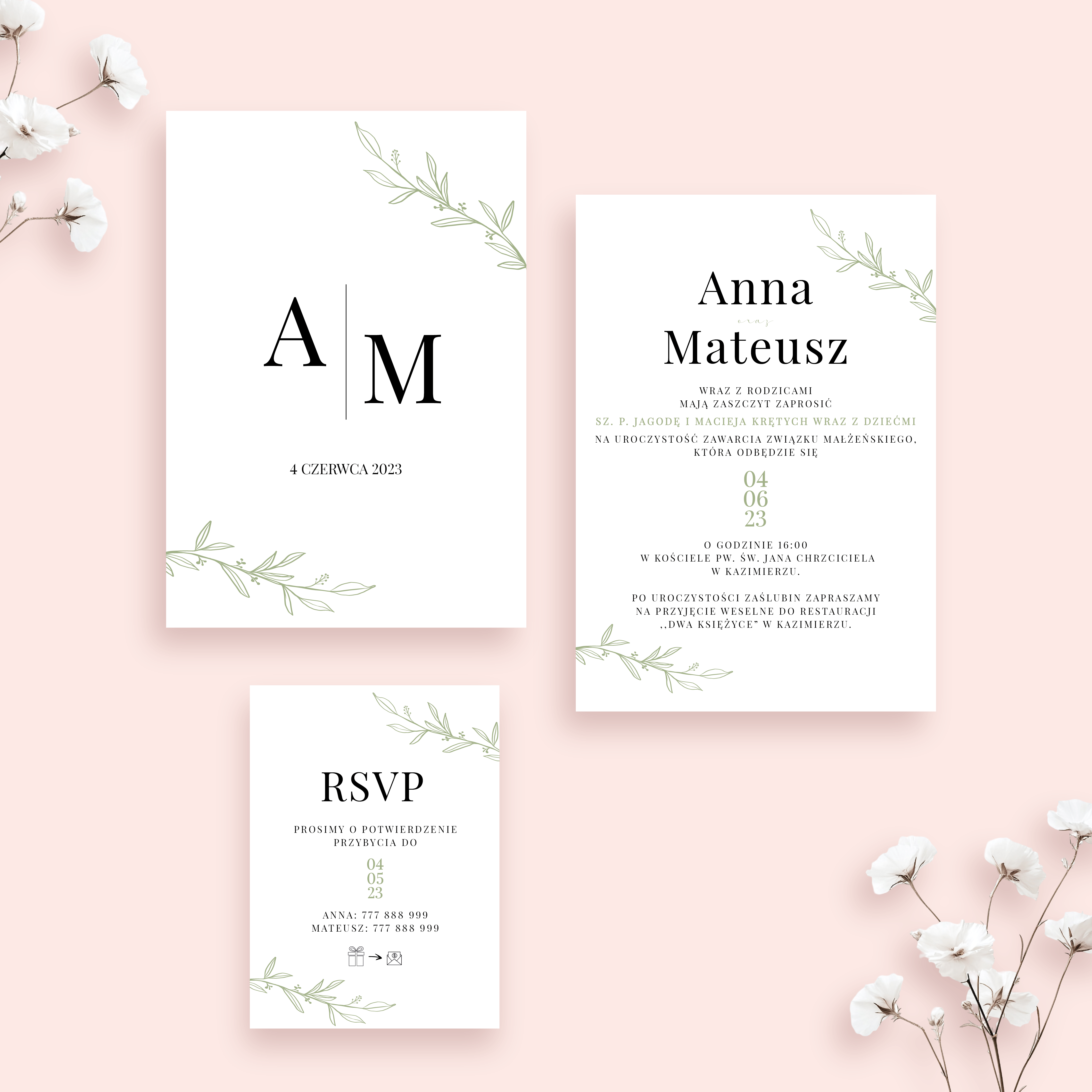 Zaproszenie dwustronne z bilecikiem zachowane jest w minimalistycznym stylu, co z pewnością spodoba się nie jednej osobie.