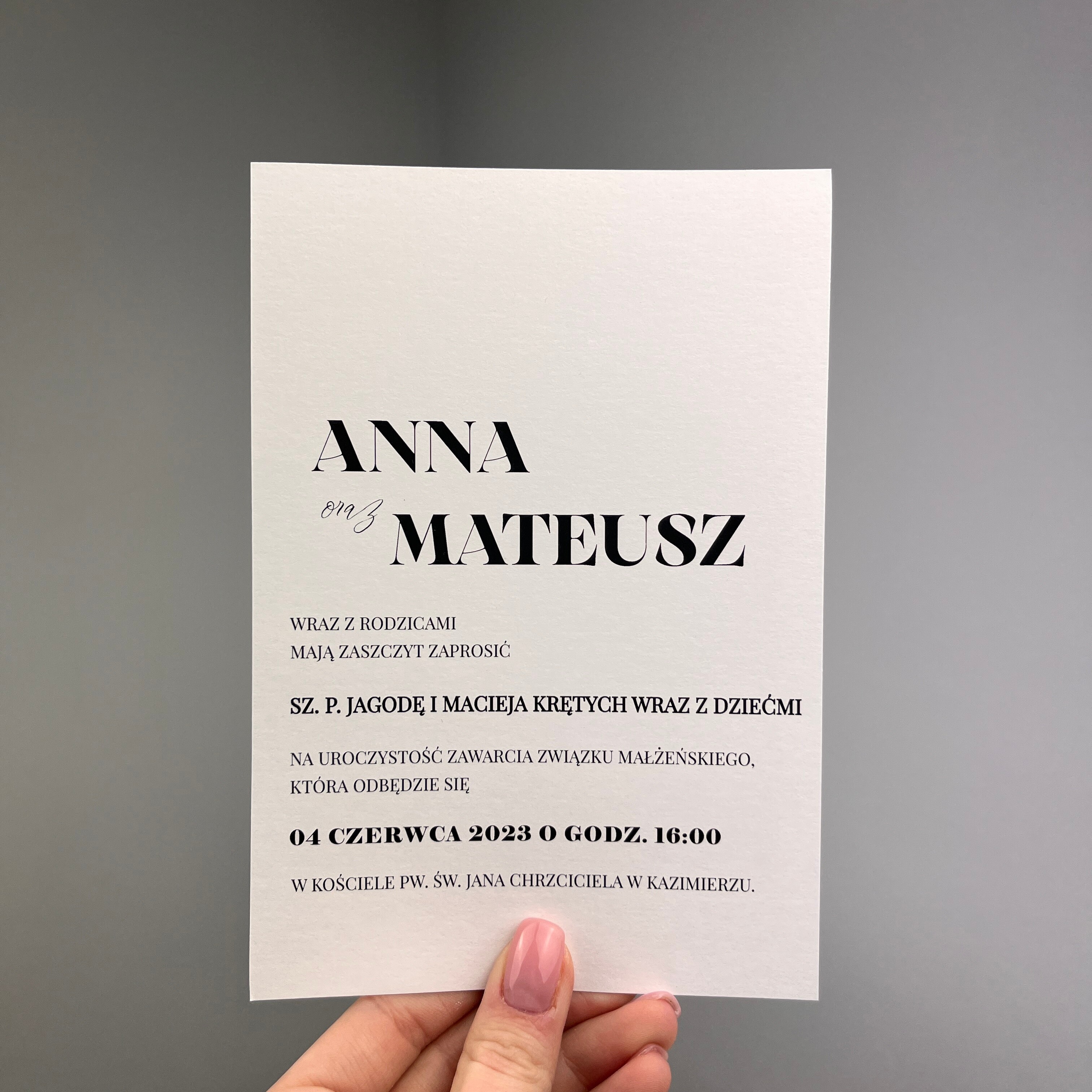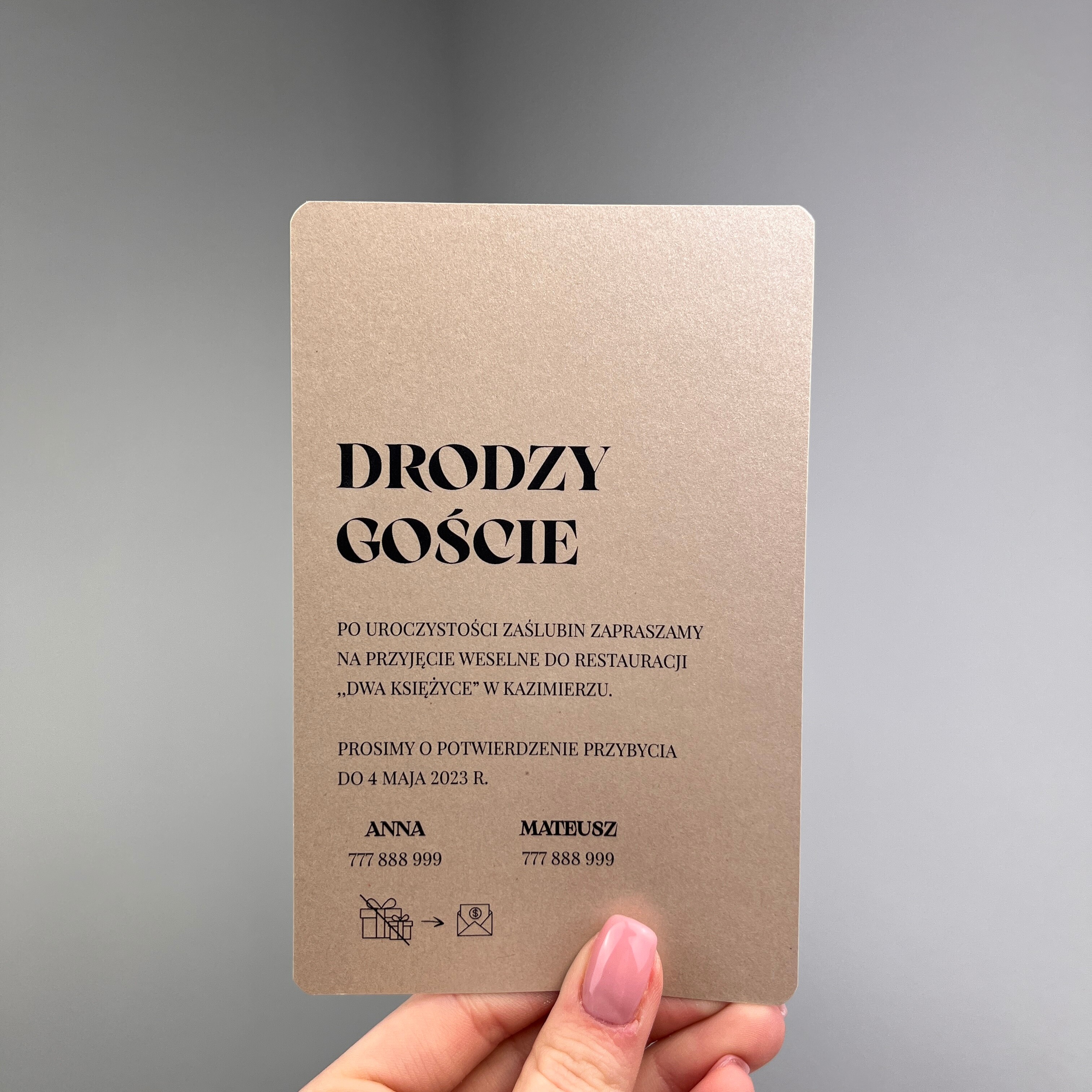 Zaproszenie z bilecikiem o dowolnym kolorze. Tekst z możliwością modyfikacji.