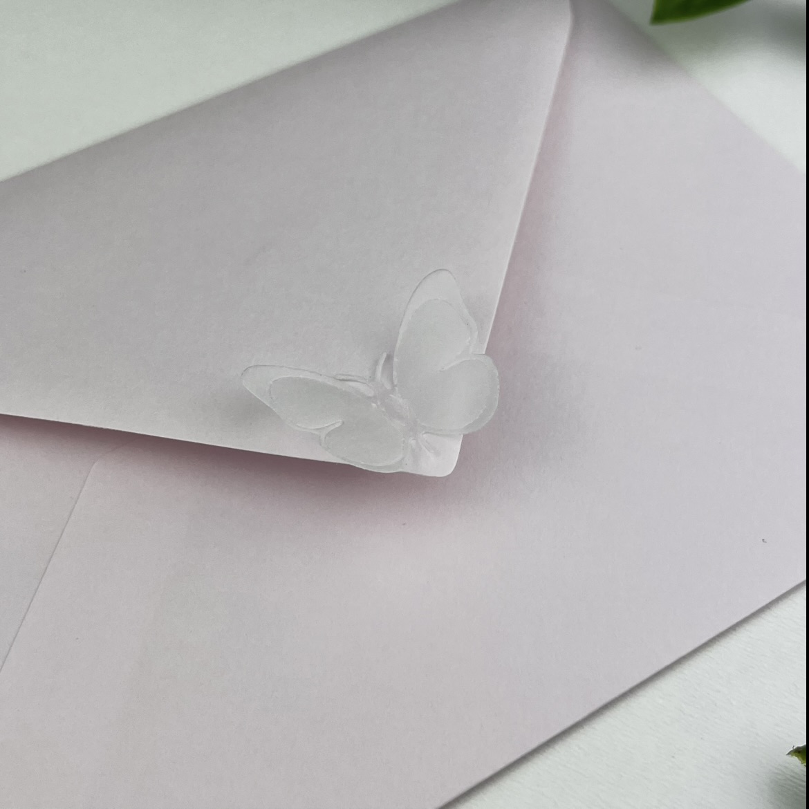 Minimalistyczne zaproszenie z kolorowym bilecikiem. Możliwość dodania małego motylka na kopertę lub zaproszenie. W celu omówienia szczegółów przed złożeniem zamówienia napisz do mnie!