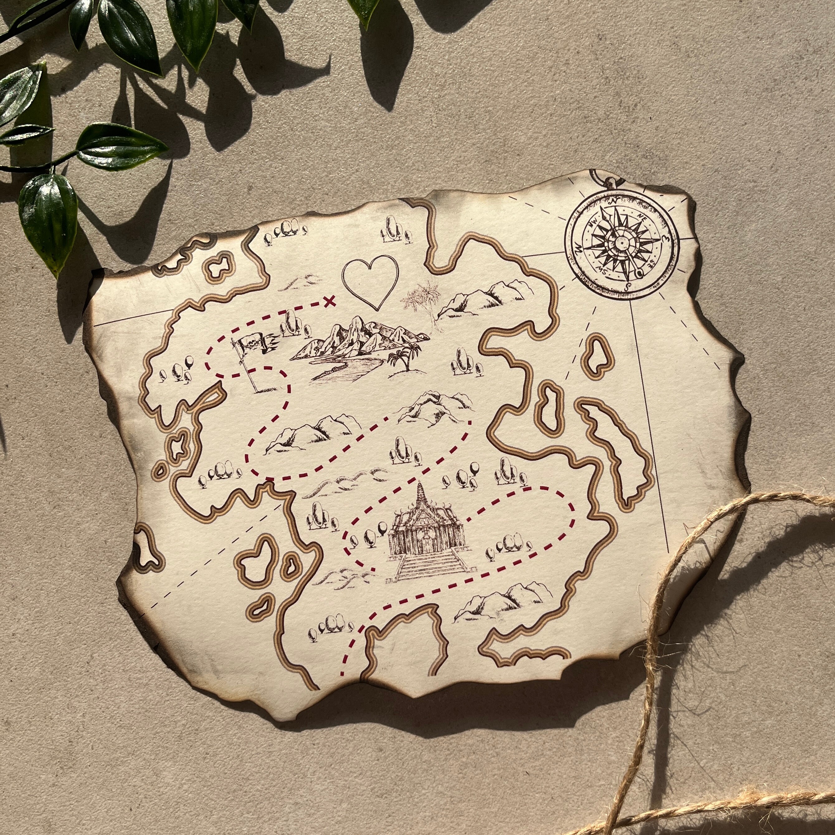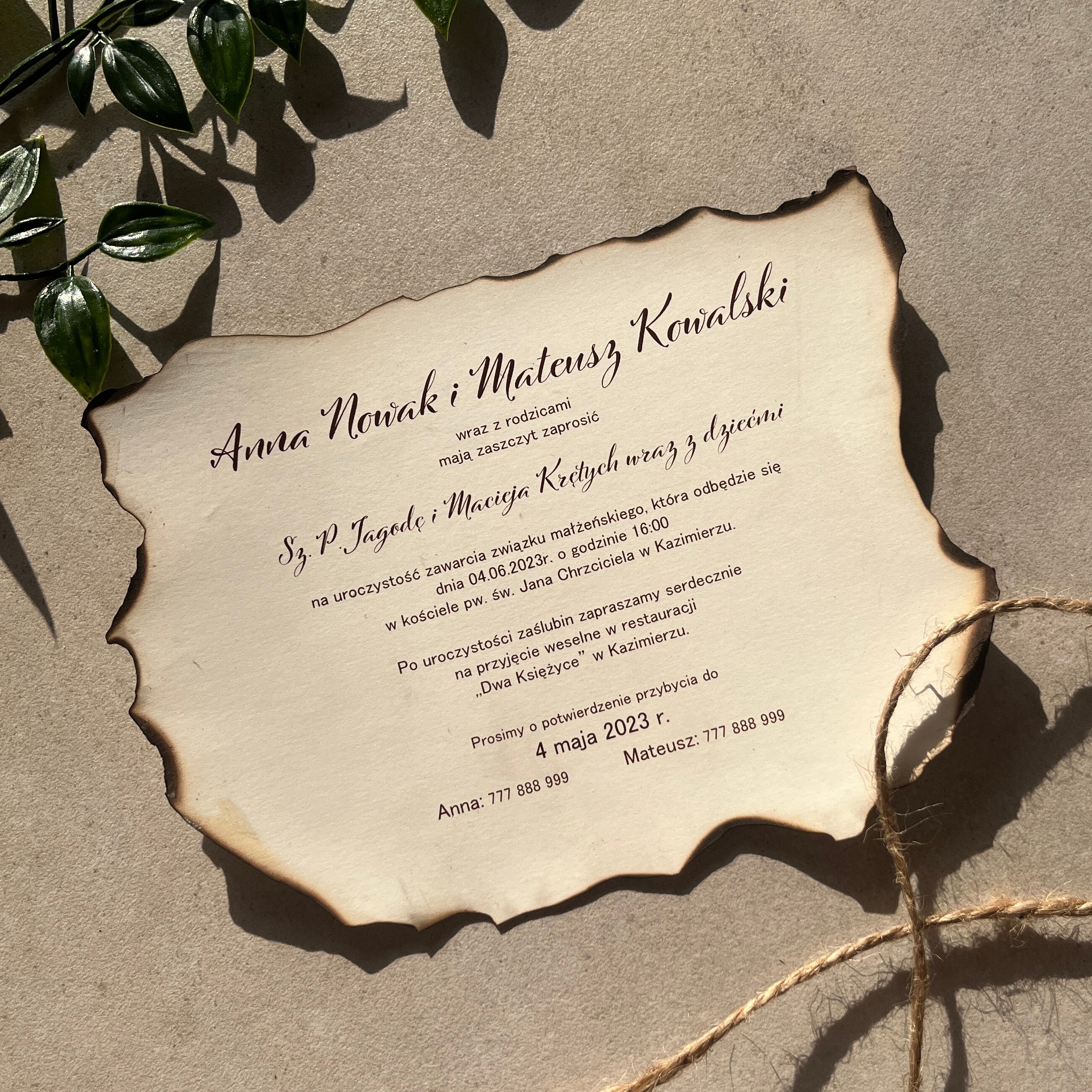 Zaproszenie Ślubne w nietypowej formie imitujące starą, zniszczoną mapę to idealny pomysł na przyciągnięcie uwagi. Każda sztuka jest opalana ręcznie, dzięki czemu są niepowtarzalne i nie znajdzie się dwóch identycznych zaproszeń.