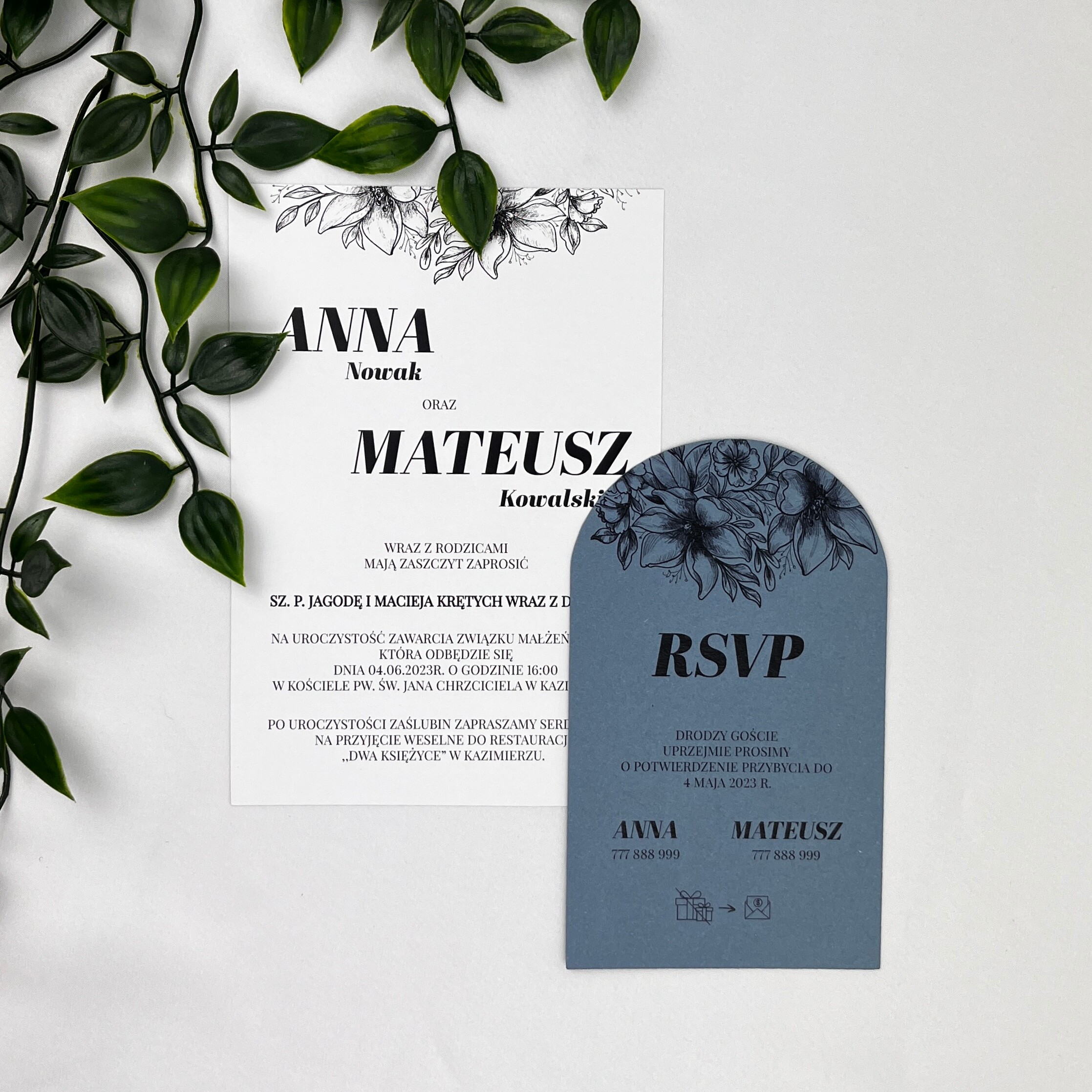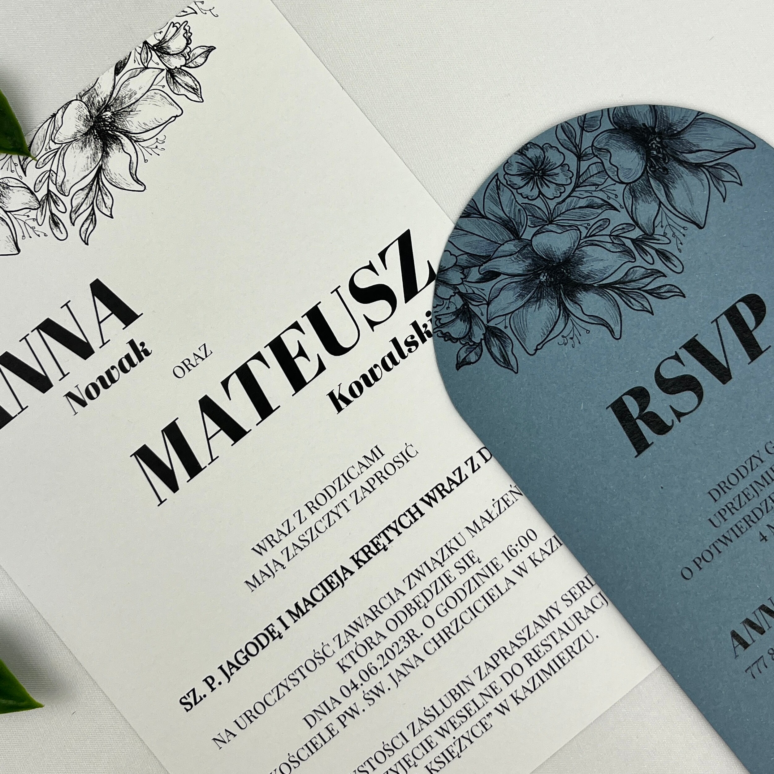 Zaproszenie ślubne z bilecikiem jest zachowane w eleganckim stylu, a dzięki kwiatom jest delikatne i urocze. Możliwość zmiany koloru bileciku sprawia, że wszystko będzie idealnie dopasowane do Waszego Dnia!