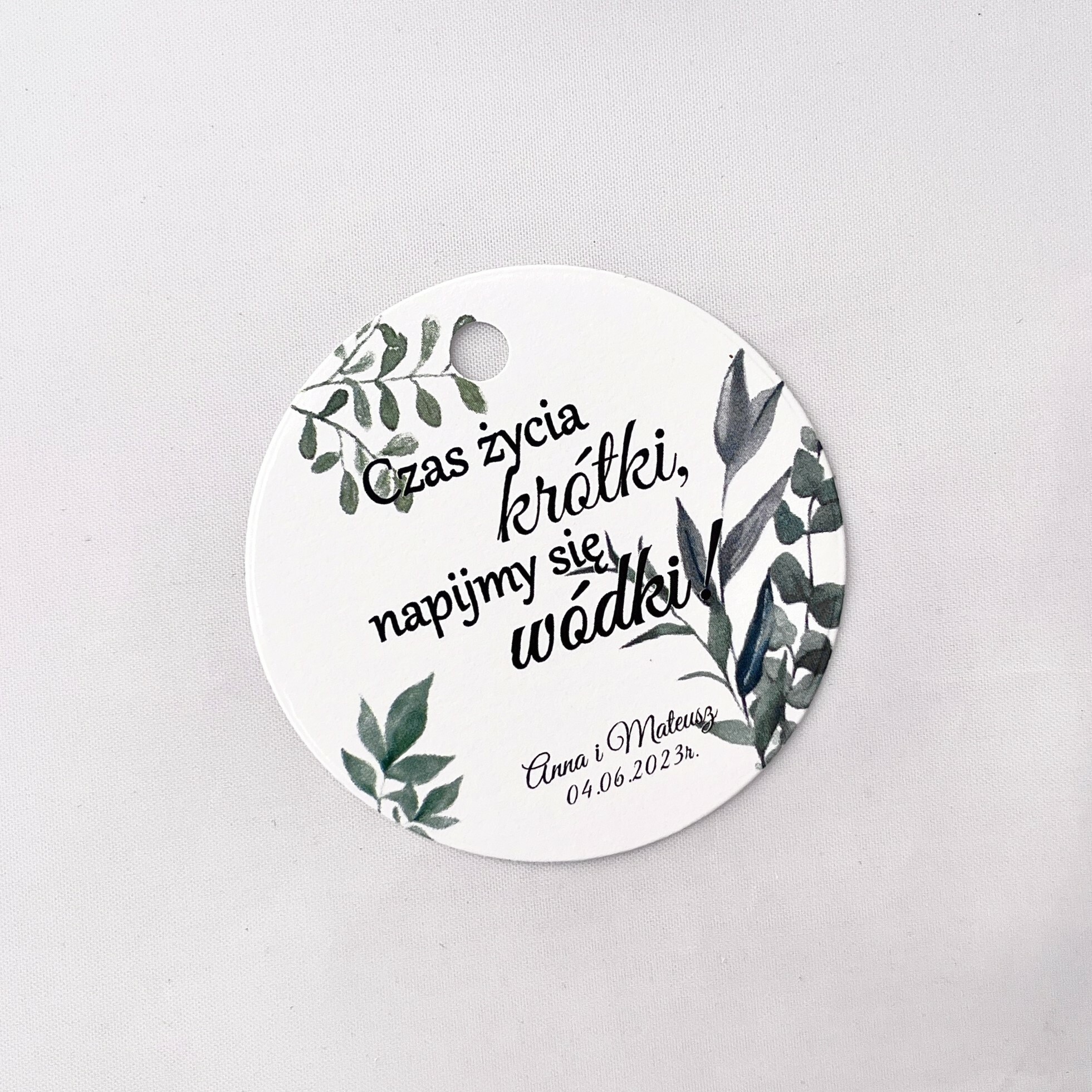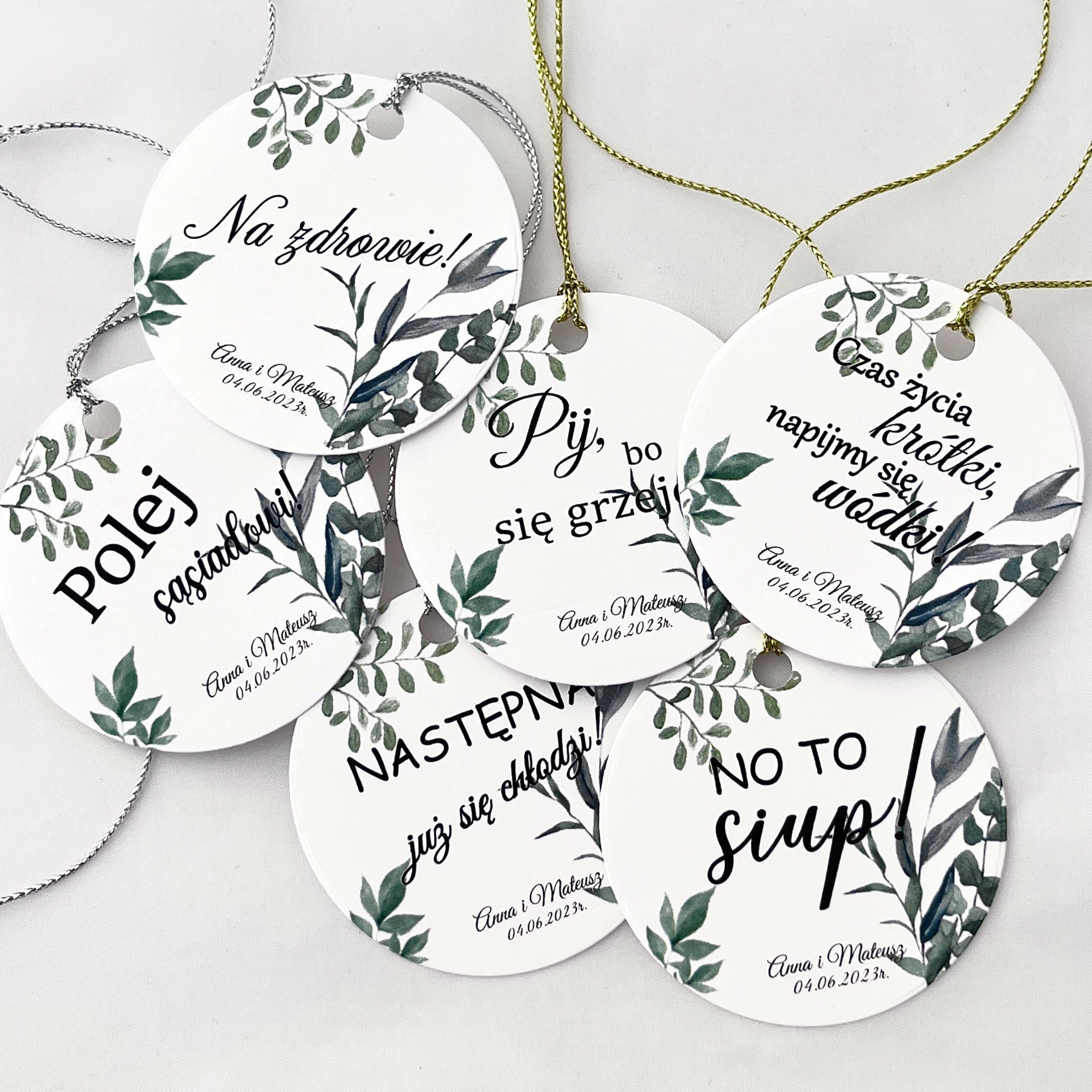 Zawieszka na alkohol to fajny sposób na dopełnienie wyglądu sali. Teksty umieszczone na nich mogą umilić czas gości, a co najważniejsze zachęcić do wspólnej zabawy! Zawieszki stworzone są w taki sposób, by pasowały nie tylko do wcześniej rozdanych zaproszeń, ale także do innych dodatków będących już na stole.