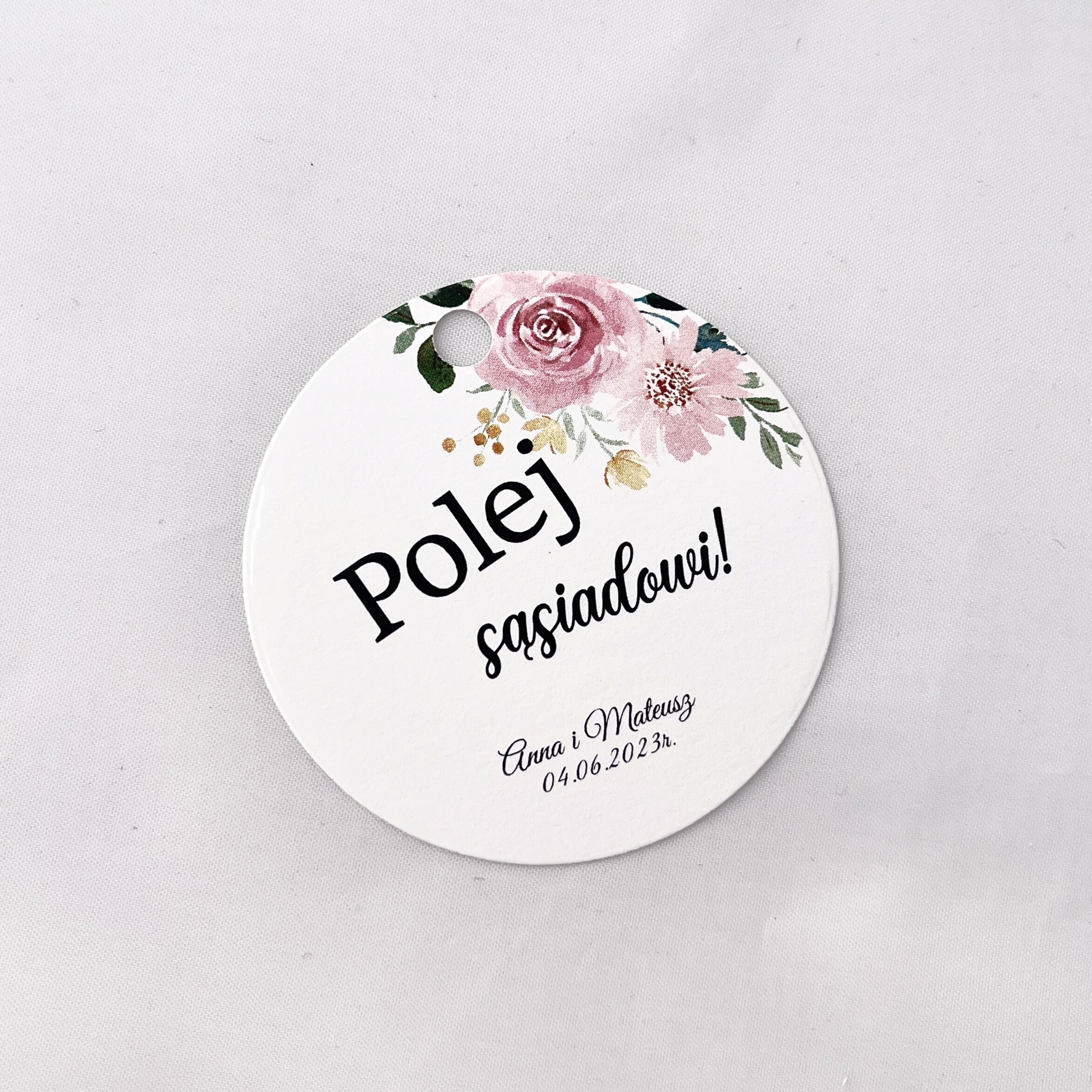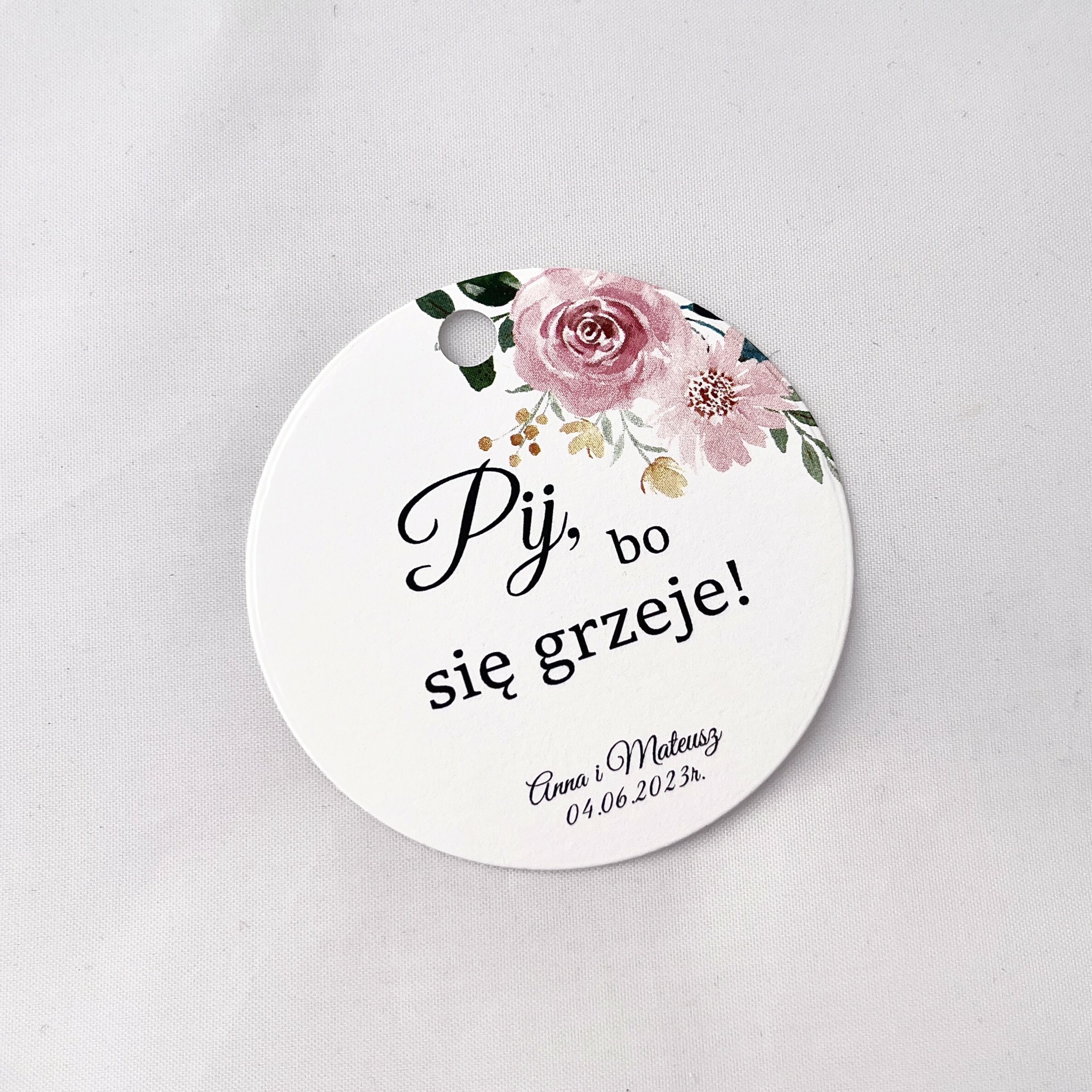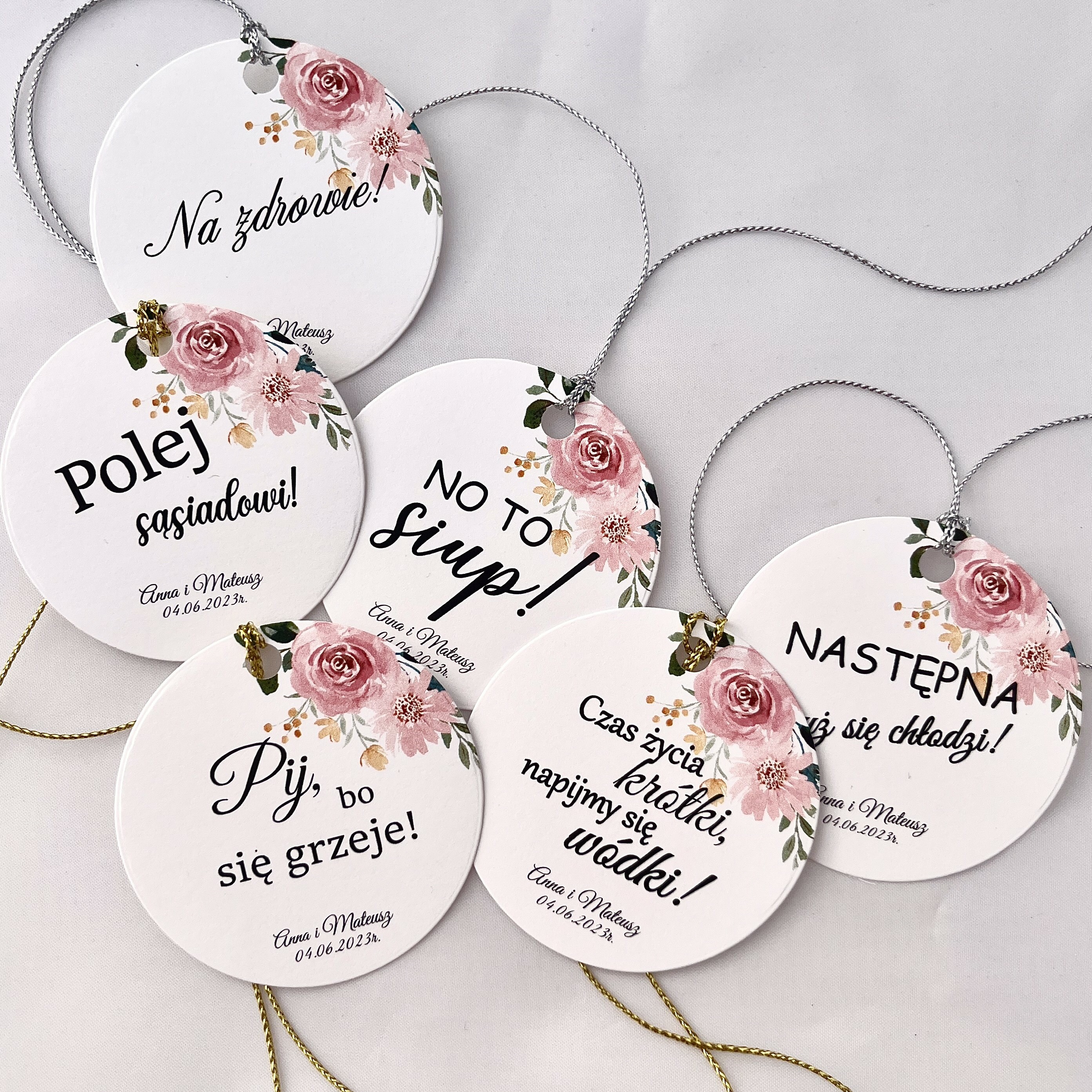 Zawieszka na alkohol to fajny sposób na dopełnienie wyglądu sali. Teksty umieszczone na nich mogą umilić czas gości, a co najważniejsze zachęcić do wspólnej zabawy! Zawieszki stworzone są w taki sposób, by pasowały nie tylko do wcześniej rozdanych zaproszeń, ale także do innych dodatków będących już na stole.
