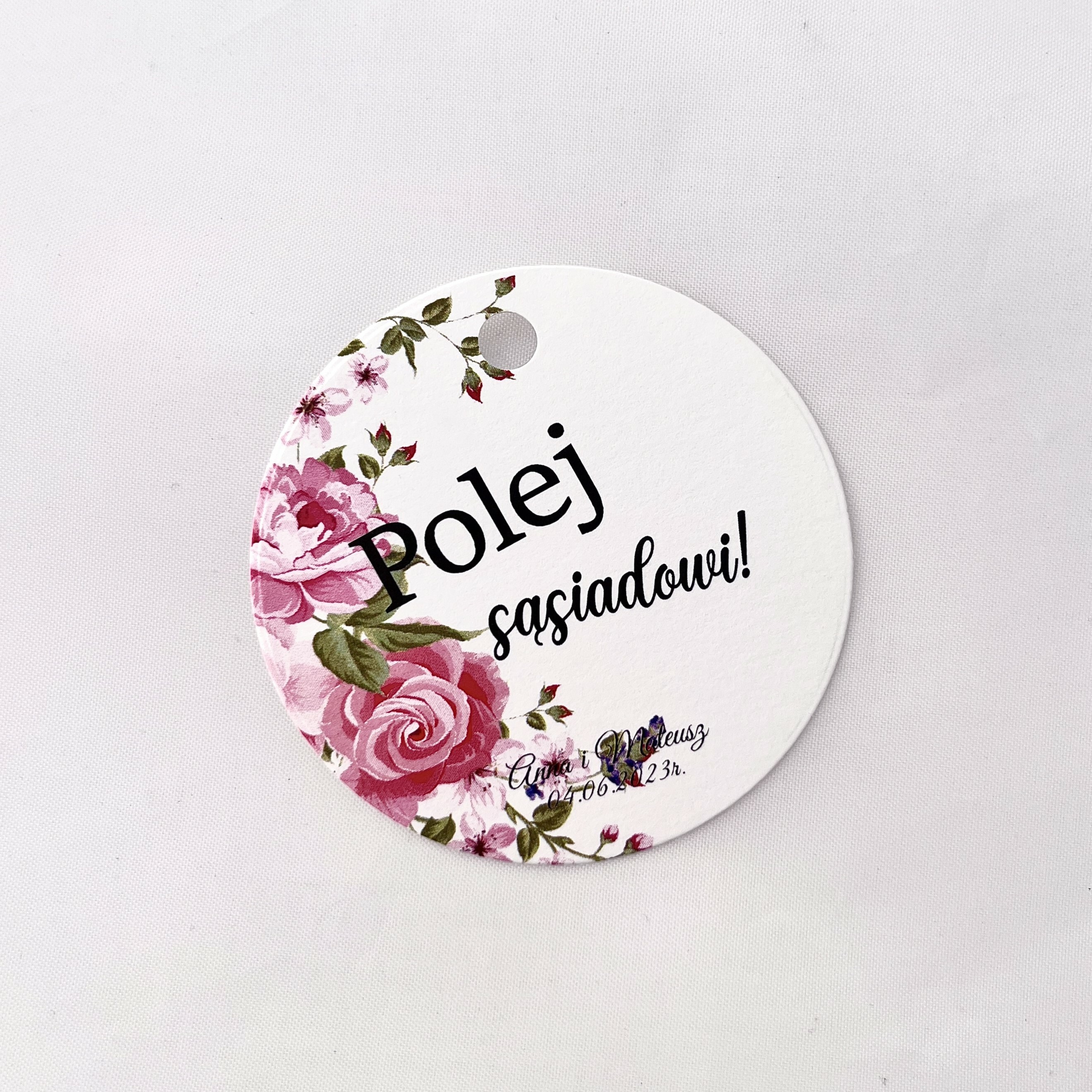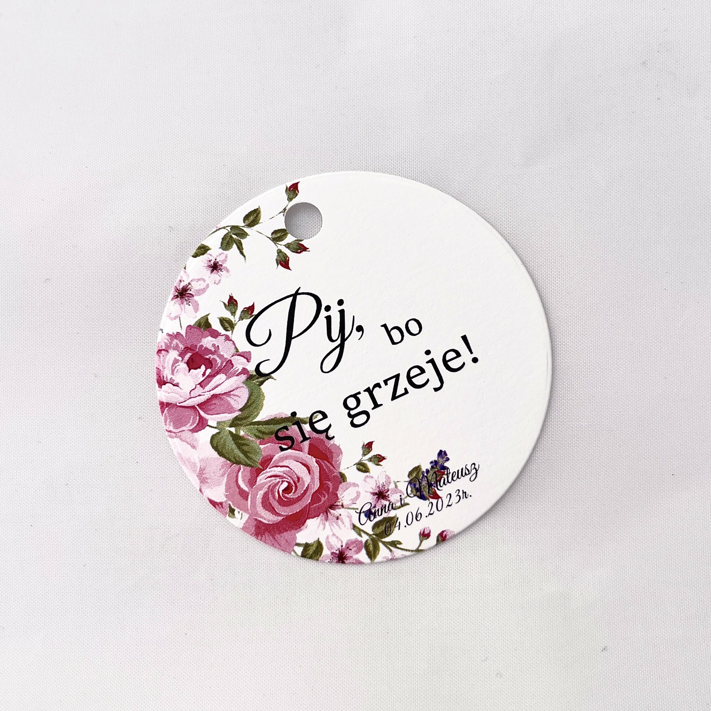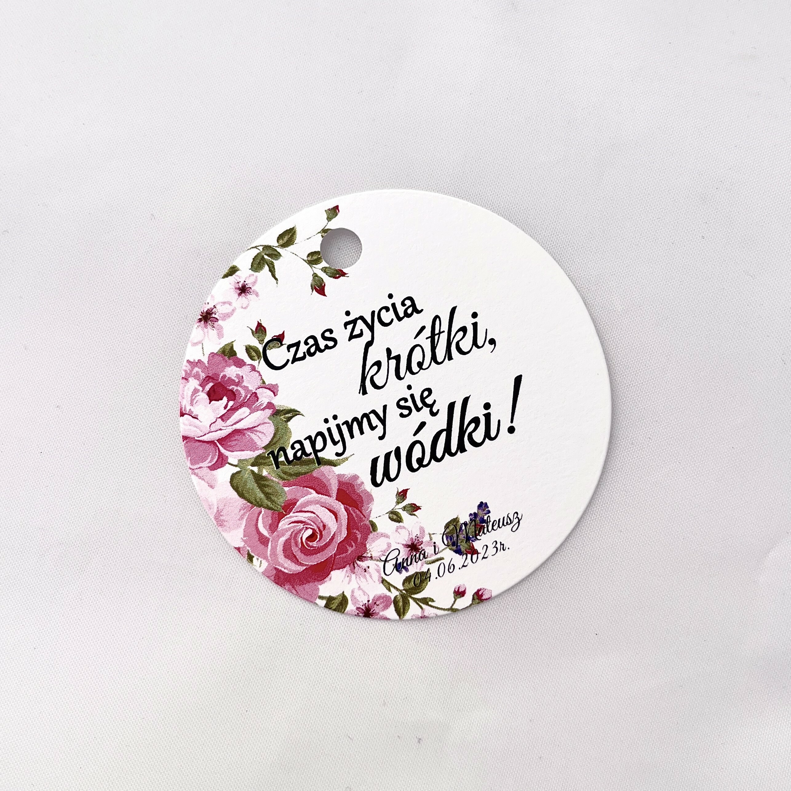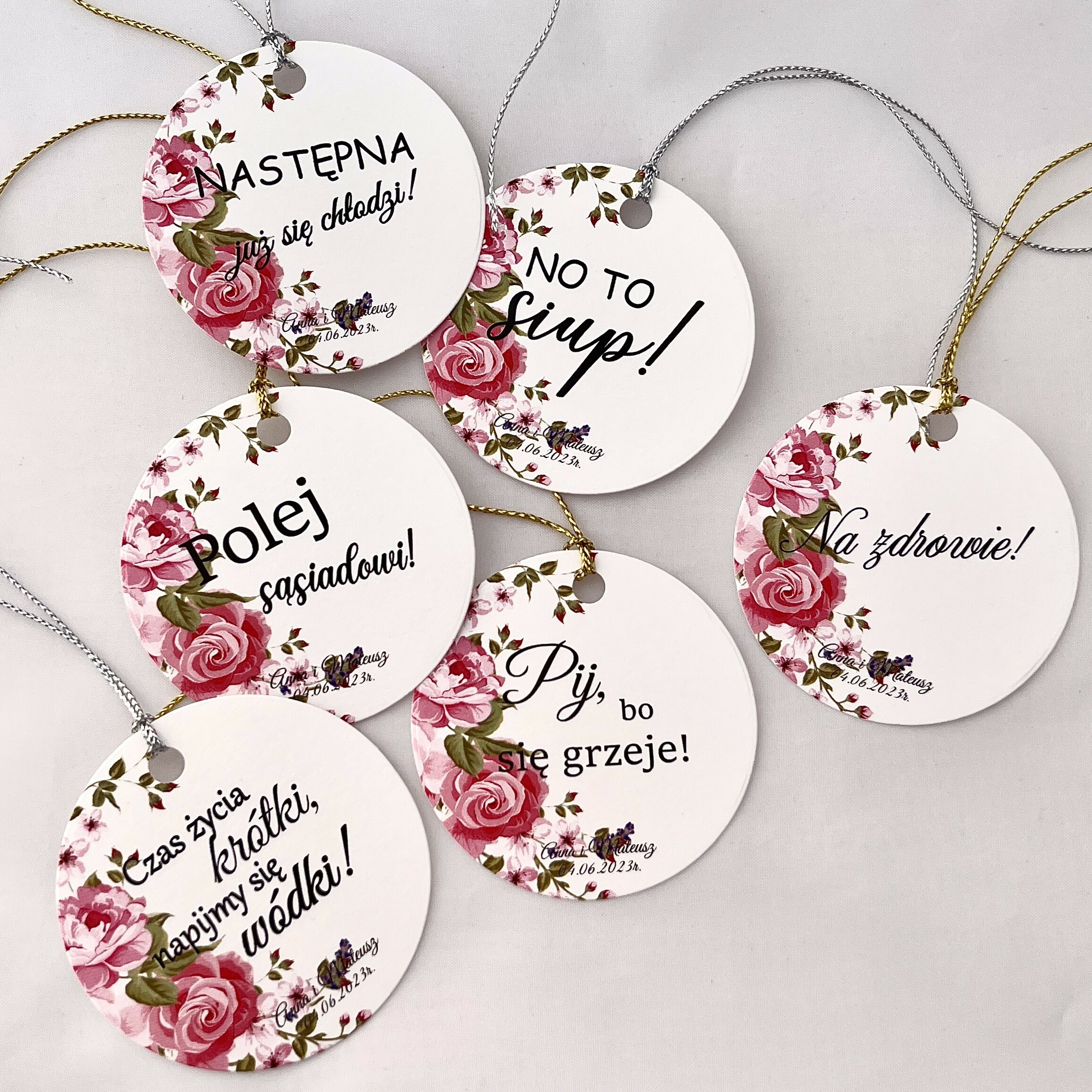 Zawieszka na alkohol to fajny sposób na dopełnienie wyglądu sali. Teksty umieszczone na nich mogą umilić czas gości, a co najważniejsze zachęcić do wspólnej zabawy! Zawieszki stworzone są w taki sposób, by pasowały nie tylko do wcześniej rozdanych zaproszeń, ale także do innych dodatków będących już na stole.